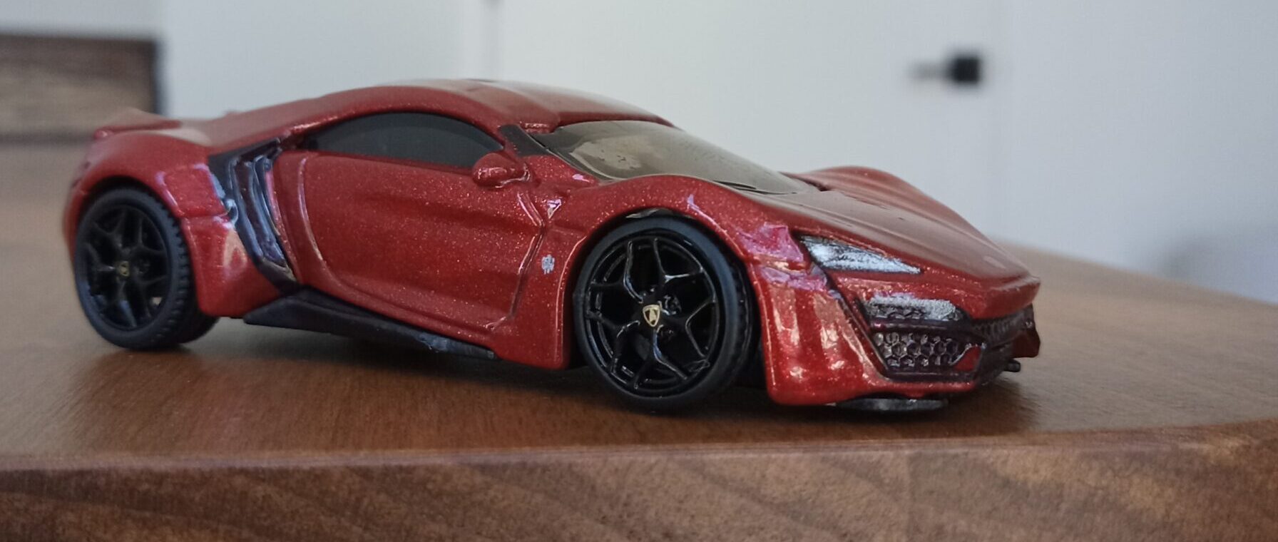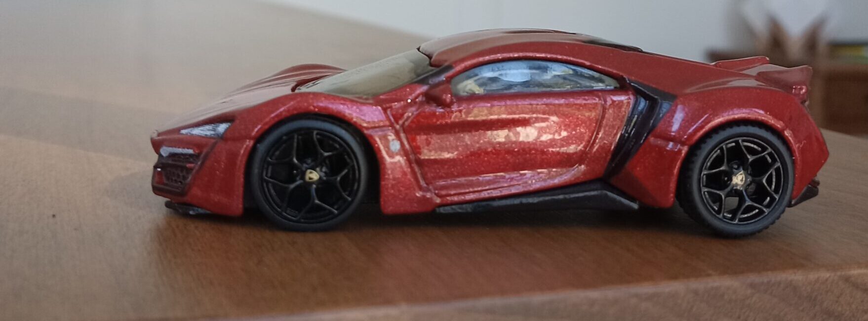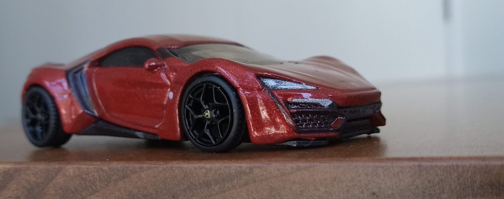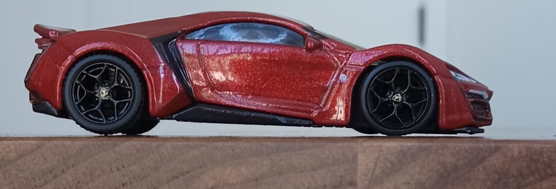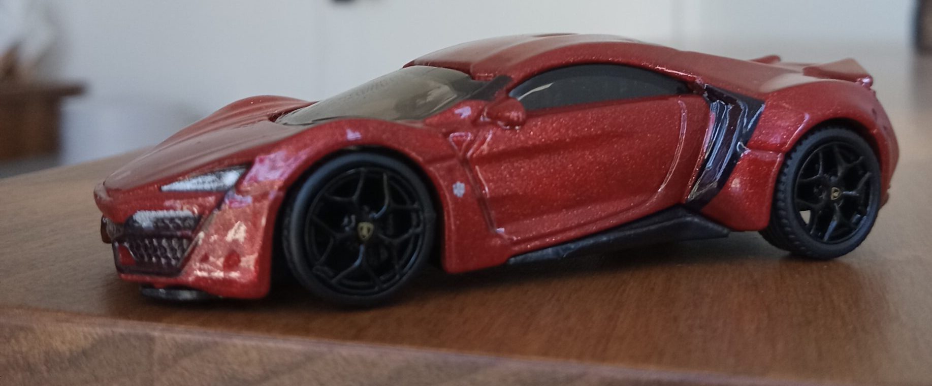 (⁂This time, while preparing photos, I swapped the tires/wheels from the [rear-tire-shabby, Mattel Hot Wheels version Lykan] with those from a MINIGT Lamborghini. I noticed that lowering the front tire position and raising the rear dramatically amplifies this design’s beastly intensity.
