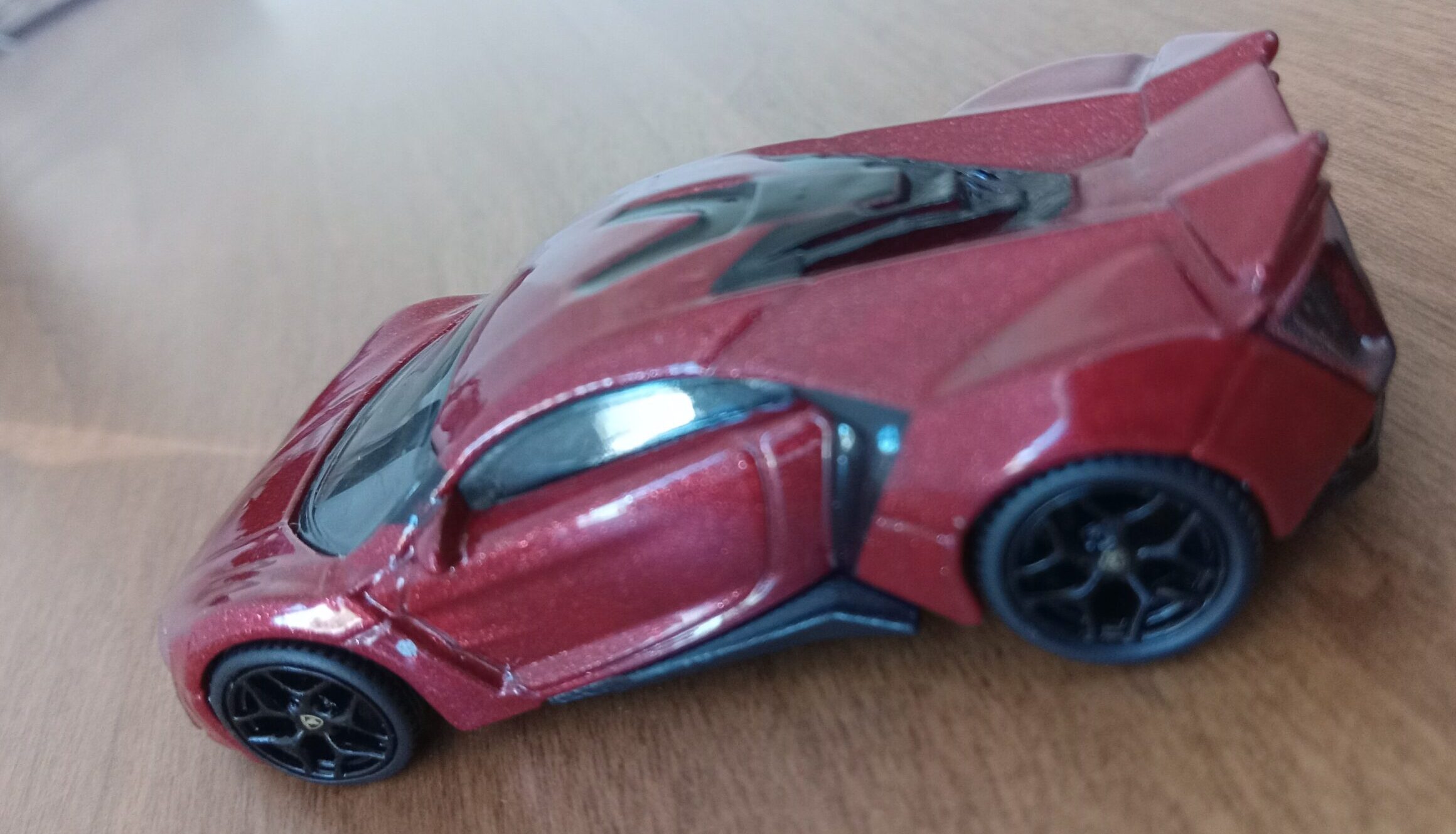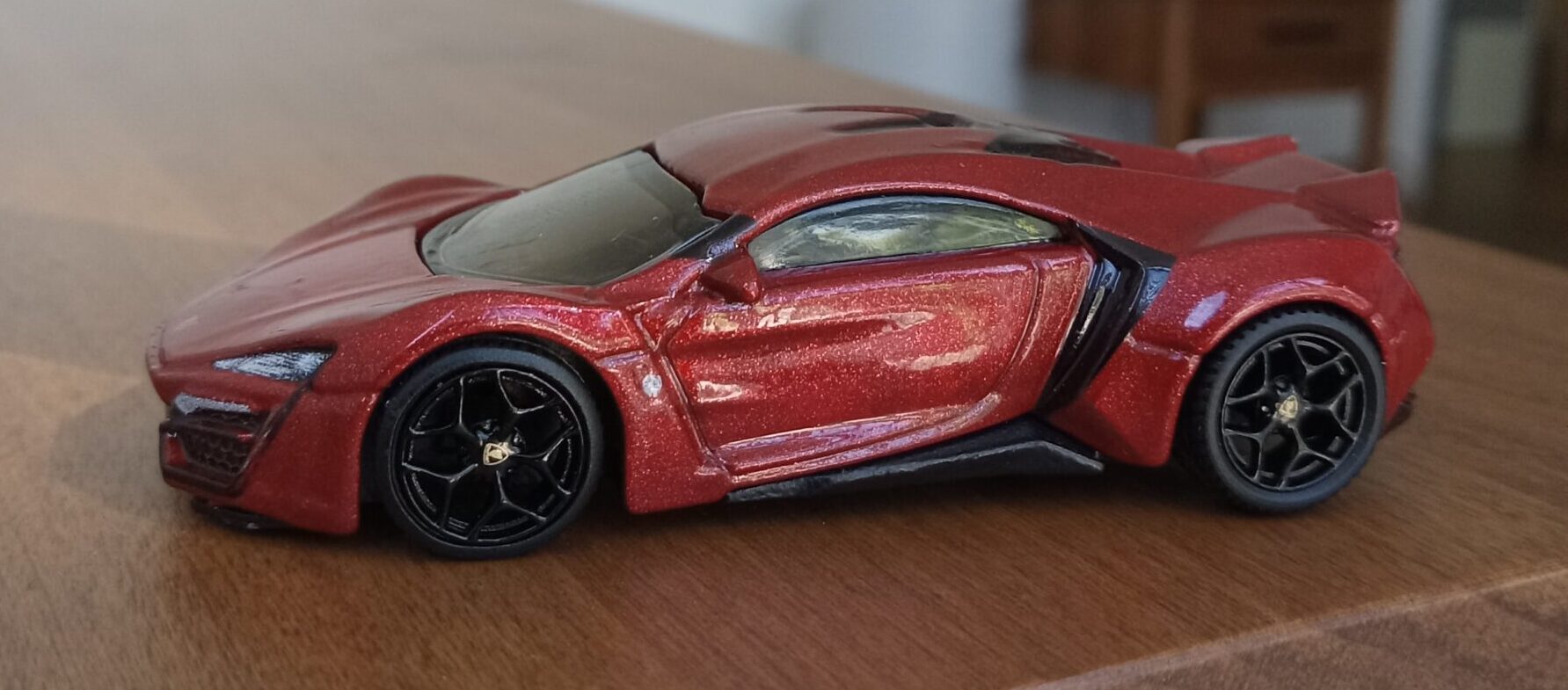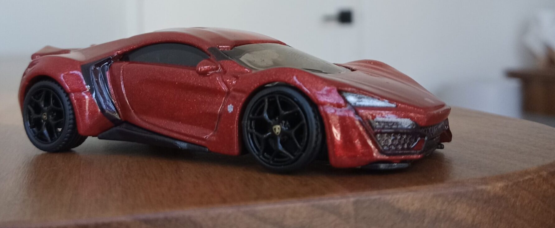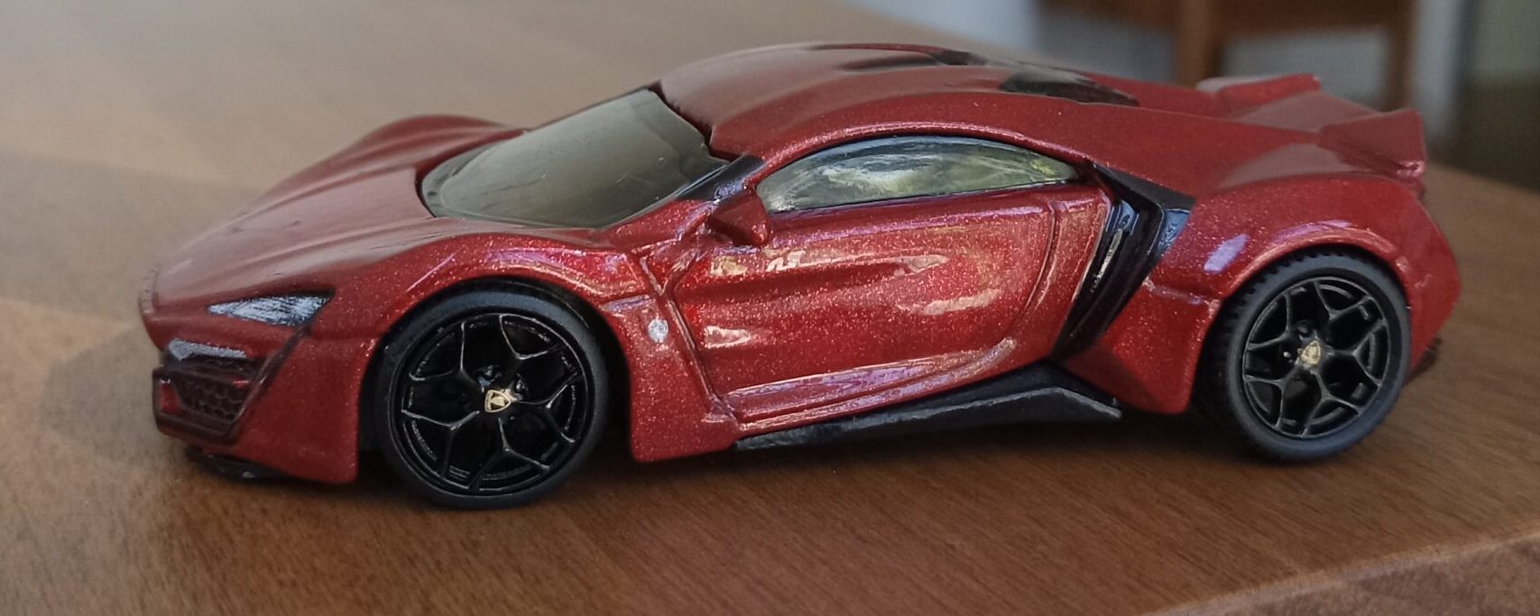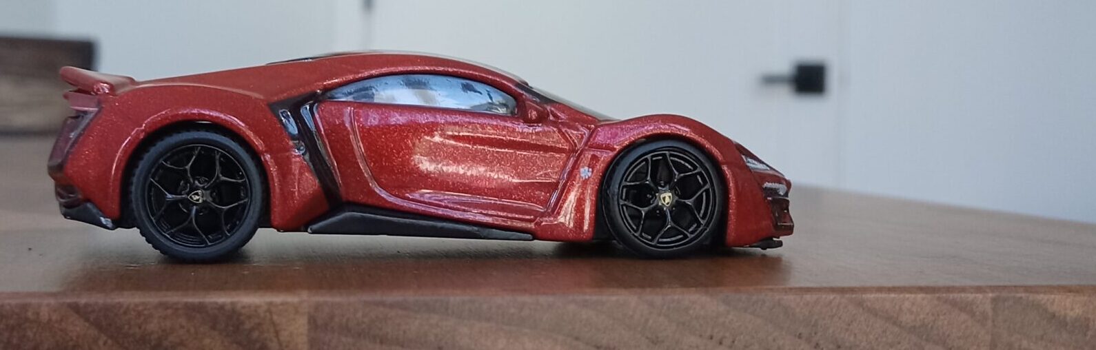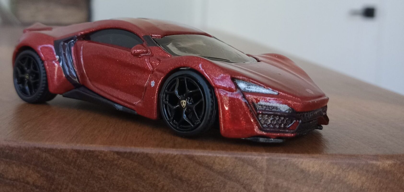 (⁂This time, while preparing photos, I swapped the tires/wheels from the [rear-tire-shabby, Mattel Hot Wheels version Lykan] with those from a MINIGT Lamborghini. I noticed that lowering the front tire position and raising the rear dramatically amplifies this design’s beastly intensity.