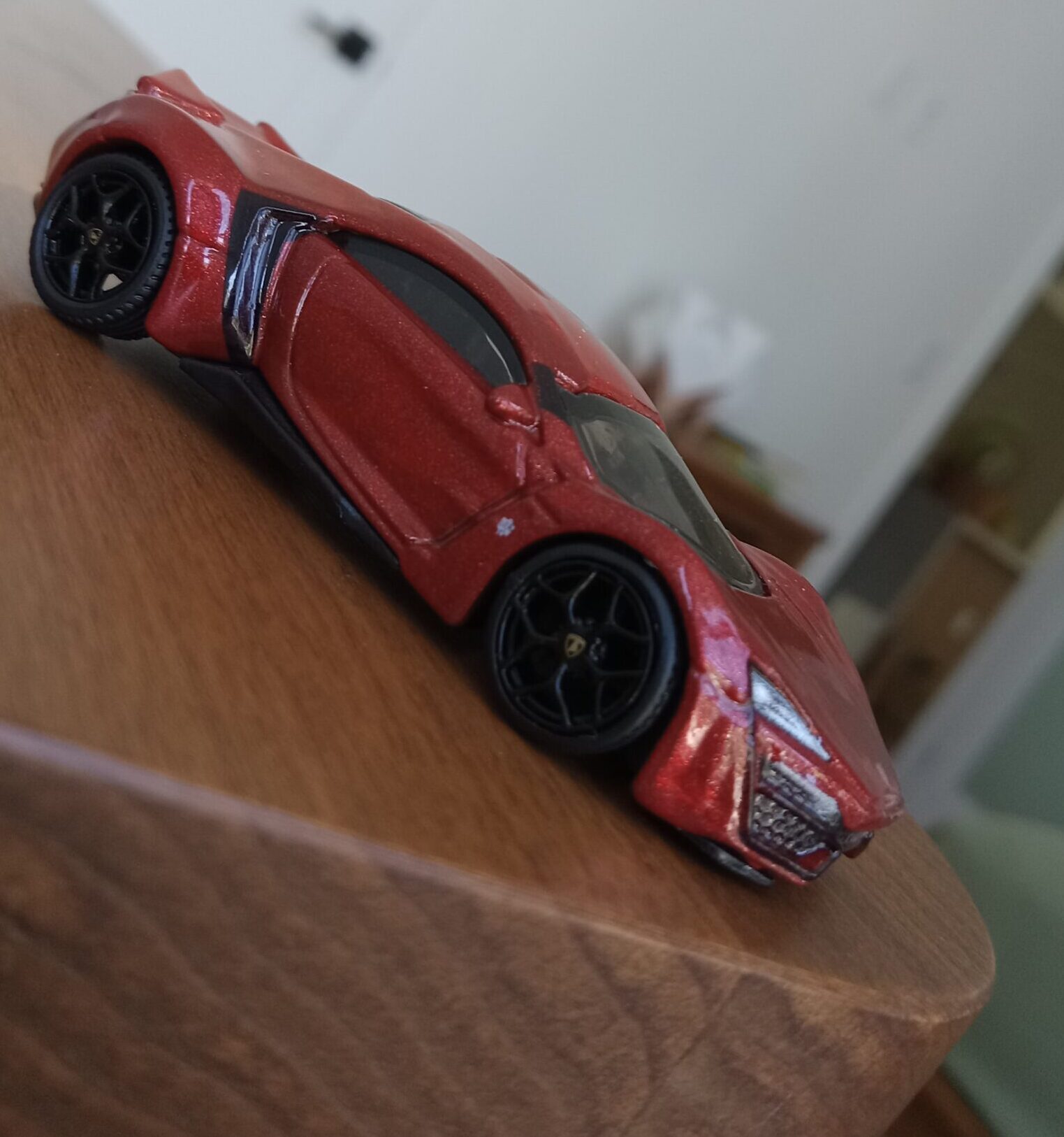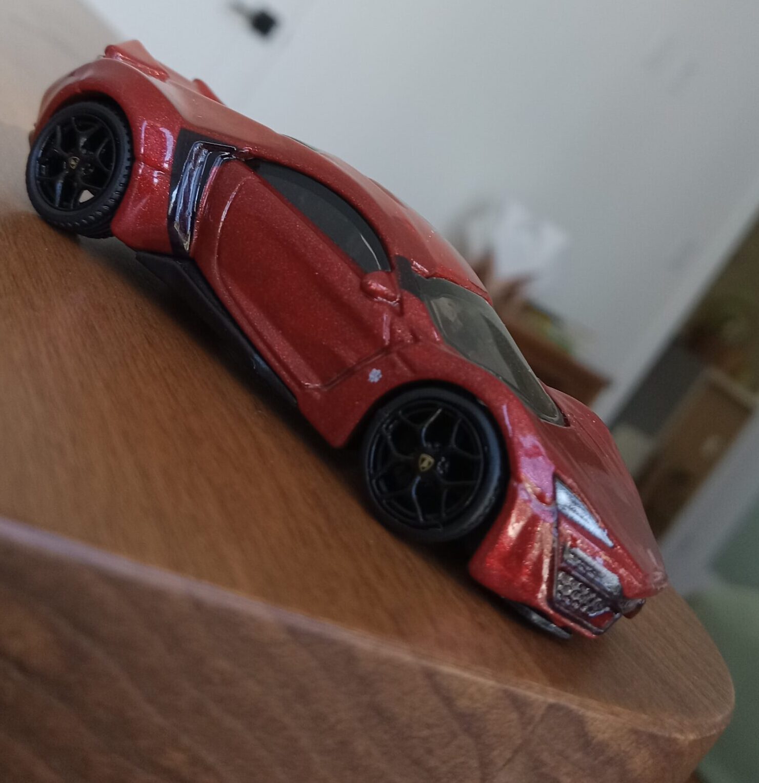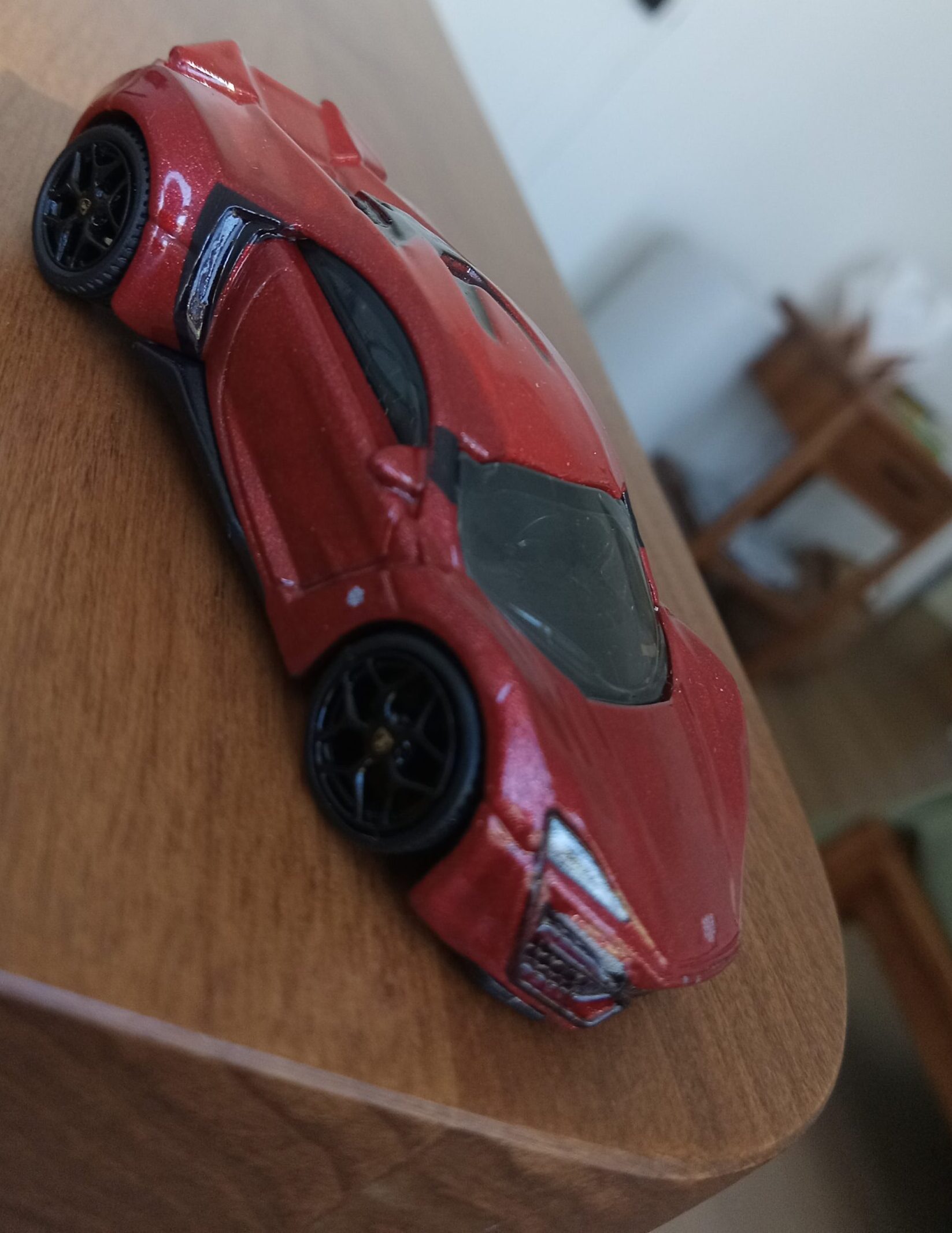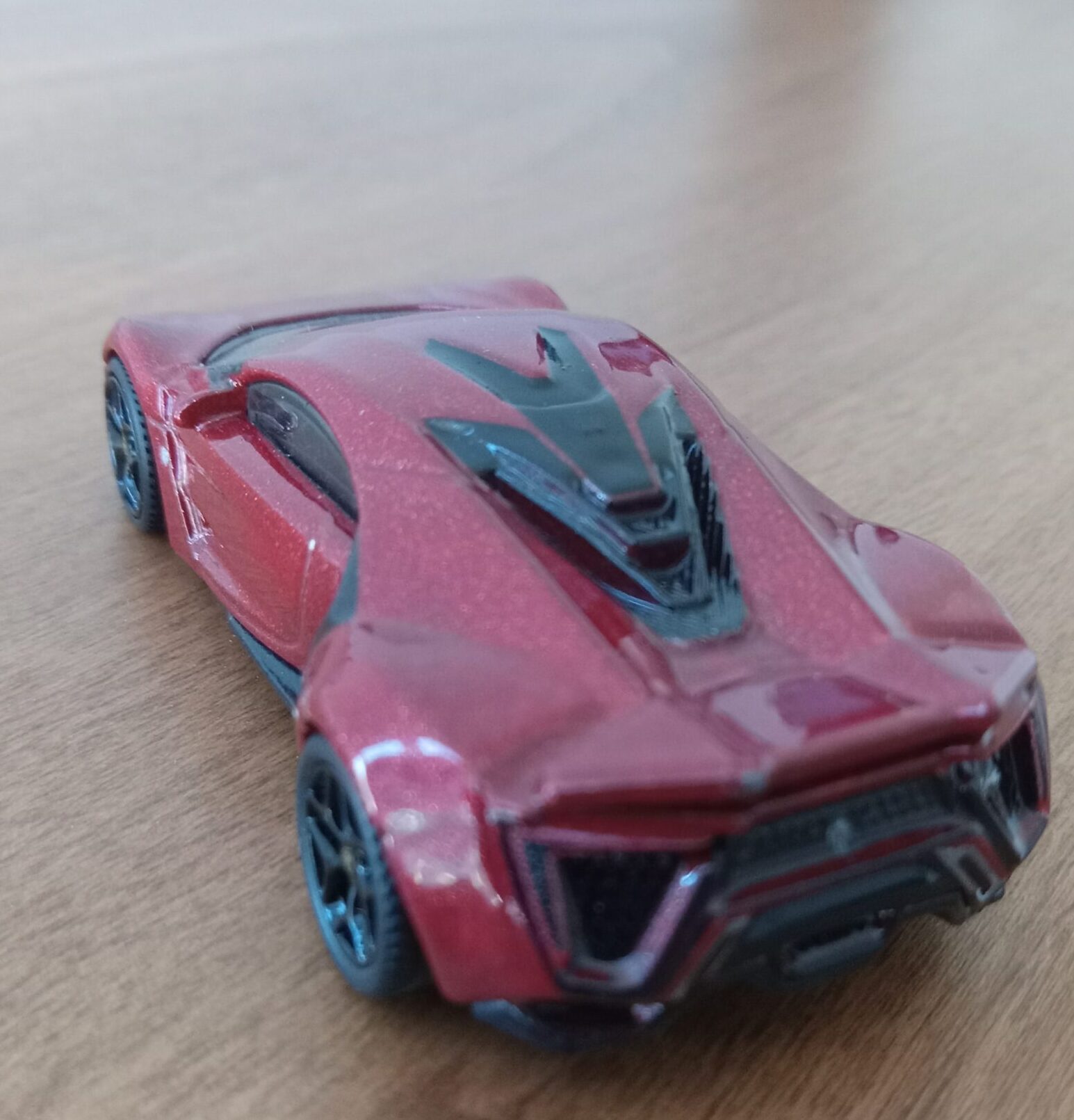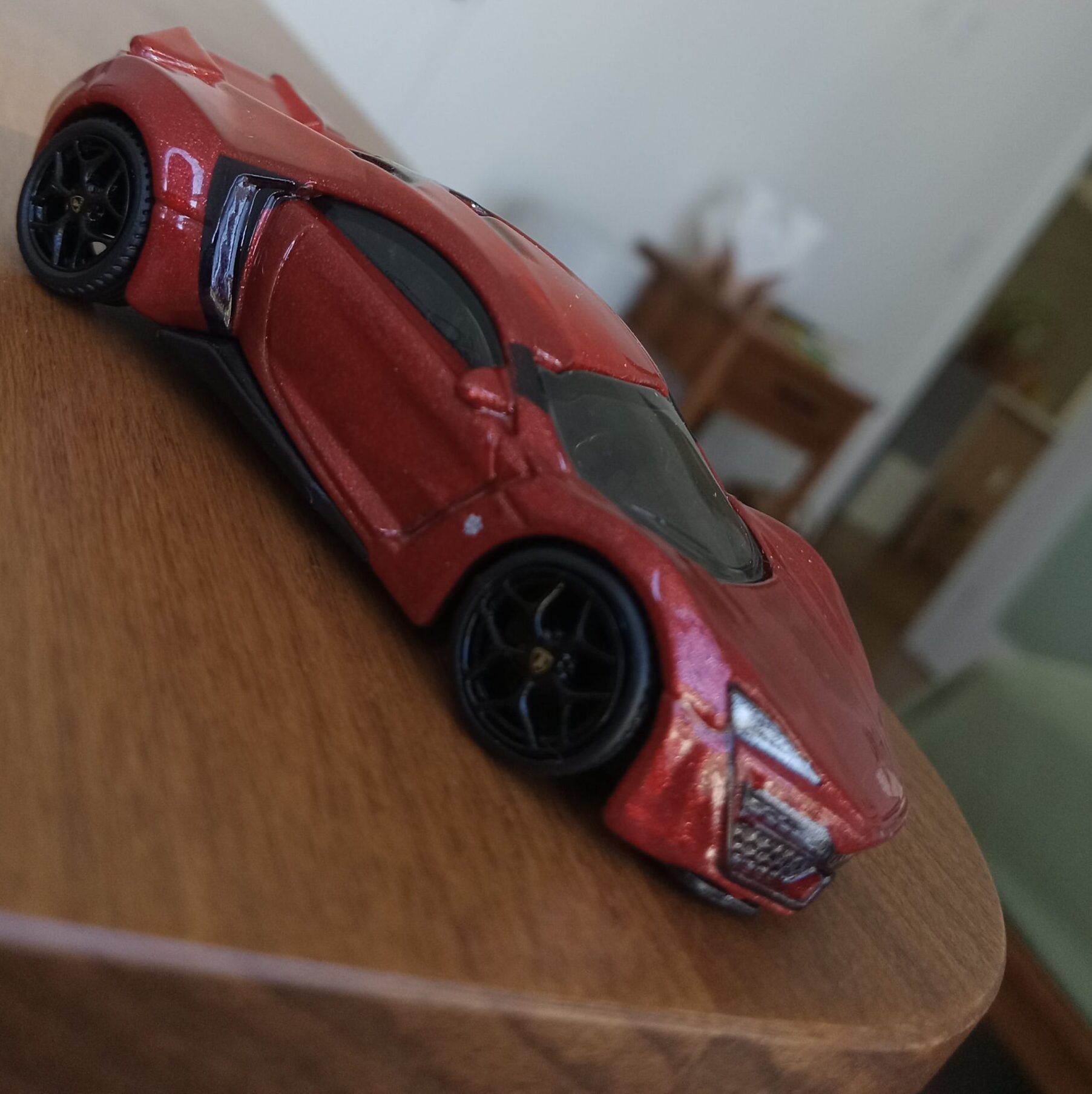 (⁂This time, while preparing photos, I swapped the tires/wheels from the [rear-tire-shabby, Mattel Hot Wheels version Lykan] with those from a MINIGT Lamborghini. I noticed that lowering the front tire position and raising the rear dramatically amplifies this design’s beastly intensity.
