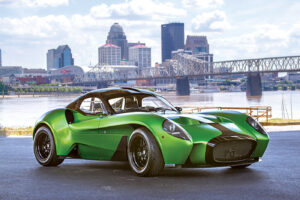 一見して、フェラーリ250TR(ポンツーン・フェンダー)を想起させる外観ですが、この車、なんとライカンと同じくミッドシップです。(フロントのボンネットの下には何があるのでしょうか?気になります。)