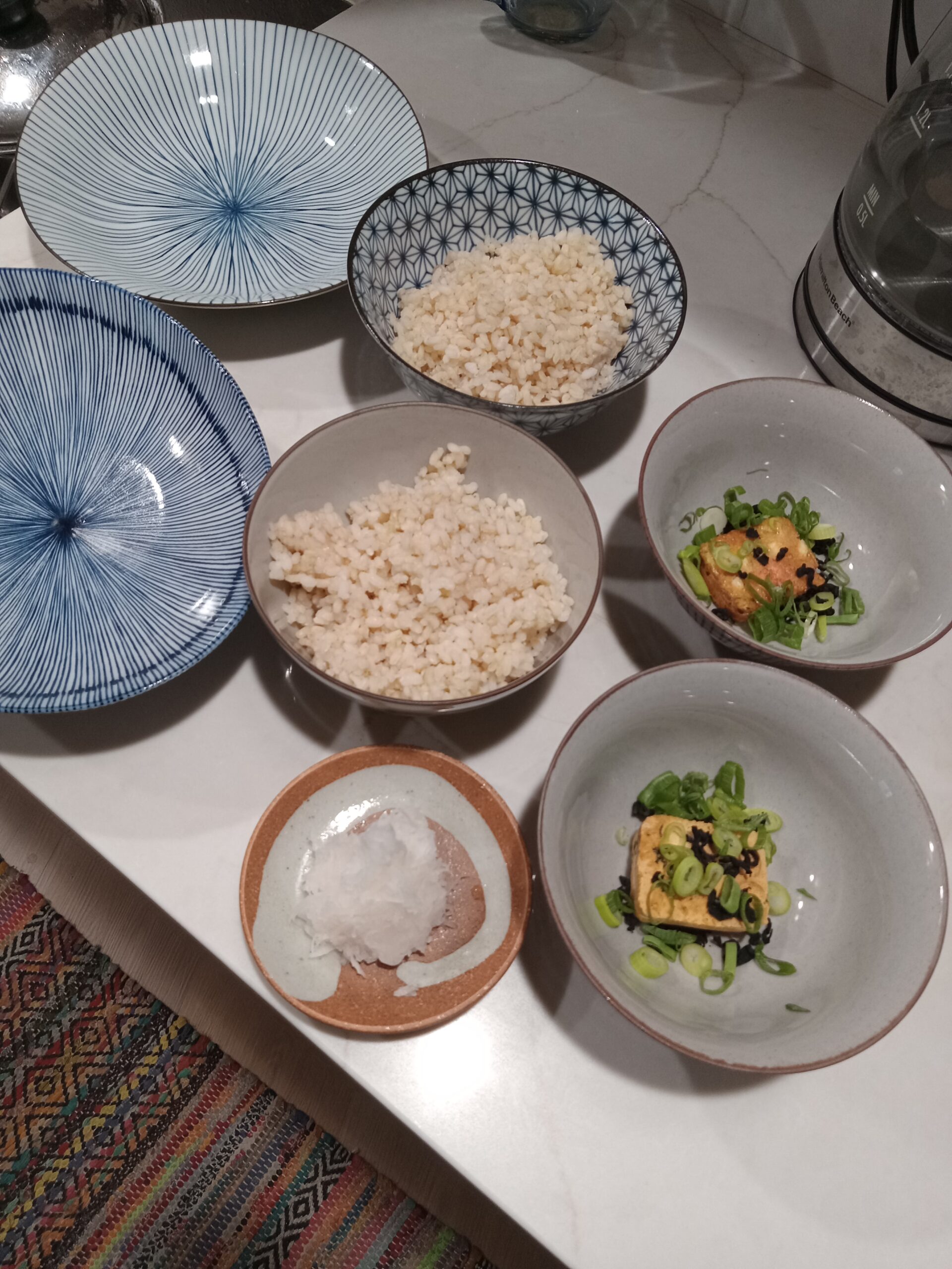 * Lightly toss in half the bonito flakes, then top with the remaining bonito flakes and green onions. Done.