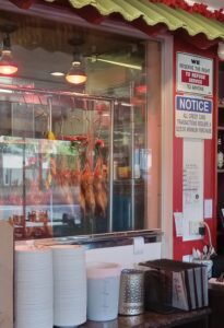 *BBQダック:時間をかけて、たれを絡めながらつるしローストにされた鴨の一羽の四分の一がぶつ切りにされて、焼き豚と一緒に。(オレンジソースがついてきました。)