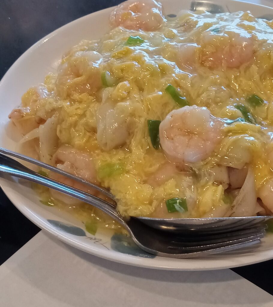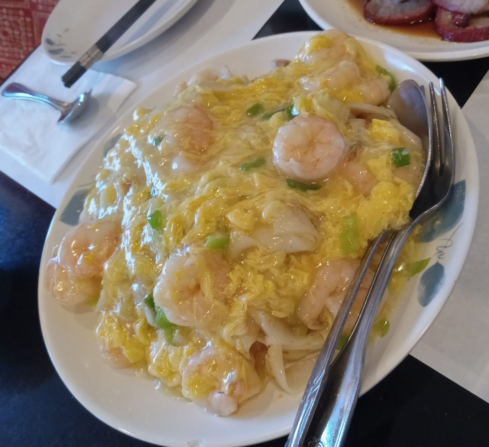 * Stir-fried Rice Noodles with Shrimp and Scrambled Eggs