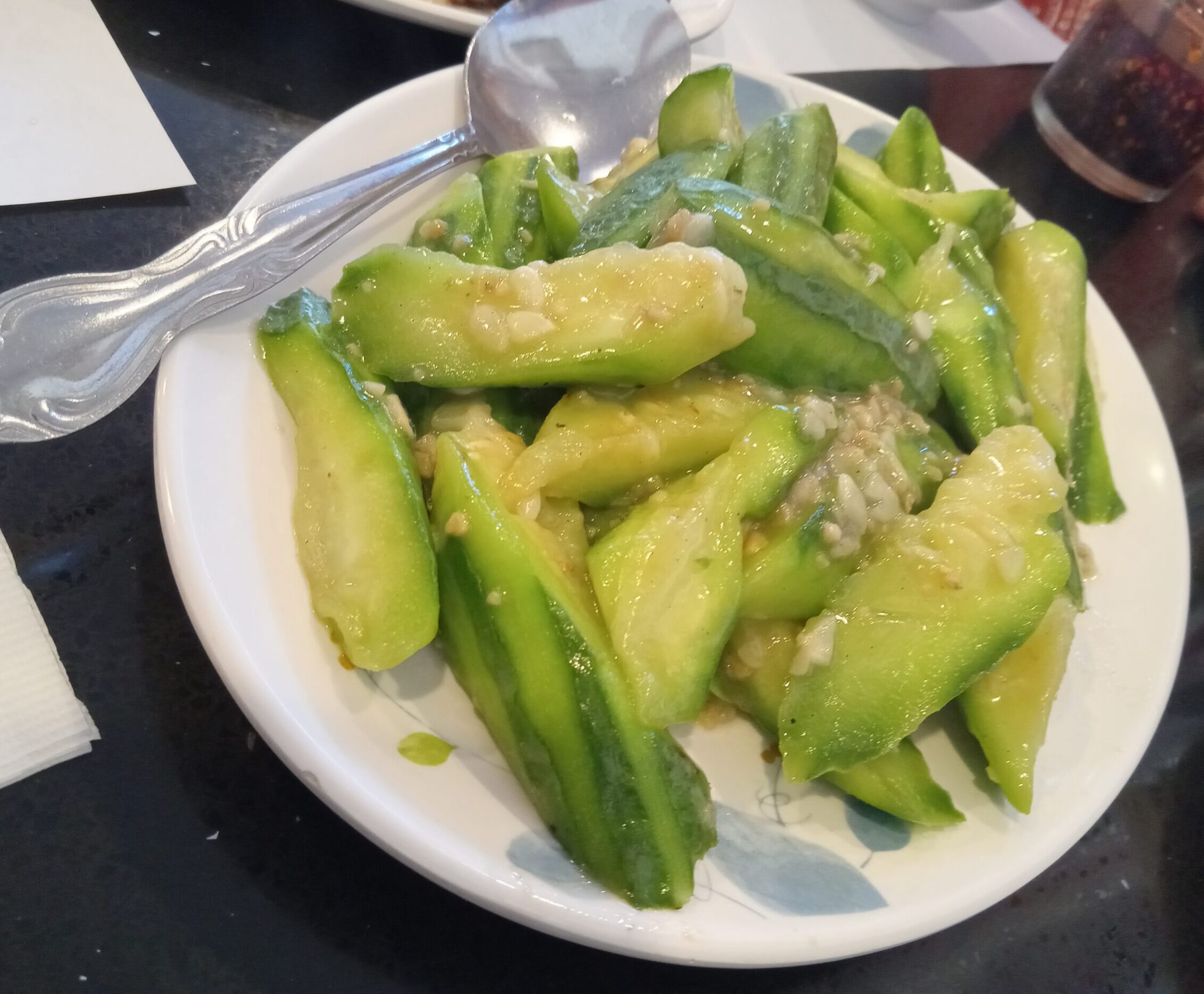 * Seasonal Vegetable: Garlic-stir-fried Opus Squash (Long Melon)