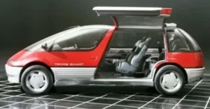 (Its charm lies in the beautiful curve flowing from the front nose to the roof and the rounded rear window area inherited from the AMC Pacer. Unlike Toyota, the production model placed the engine in the front overhang, resulting in a regrettably disastrous failure.)