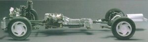 * Achieving a mid-ship layout under the floor (actually directly under the driver and passenger seats) + Plus