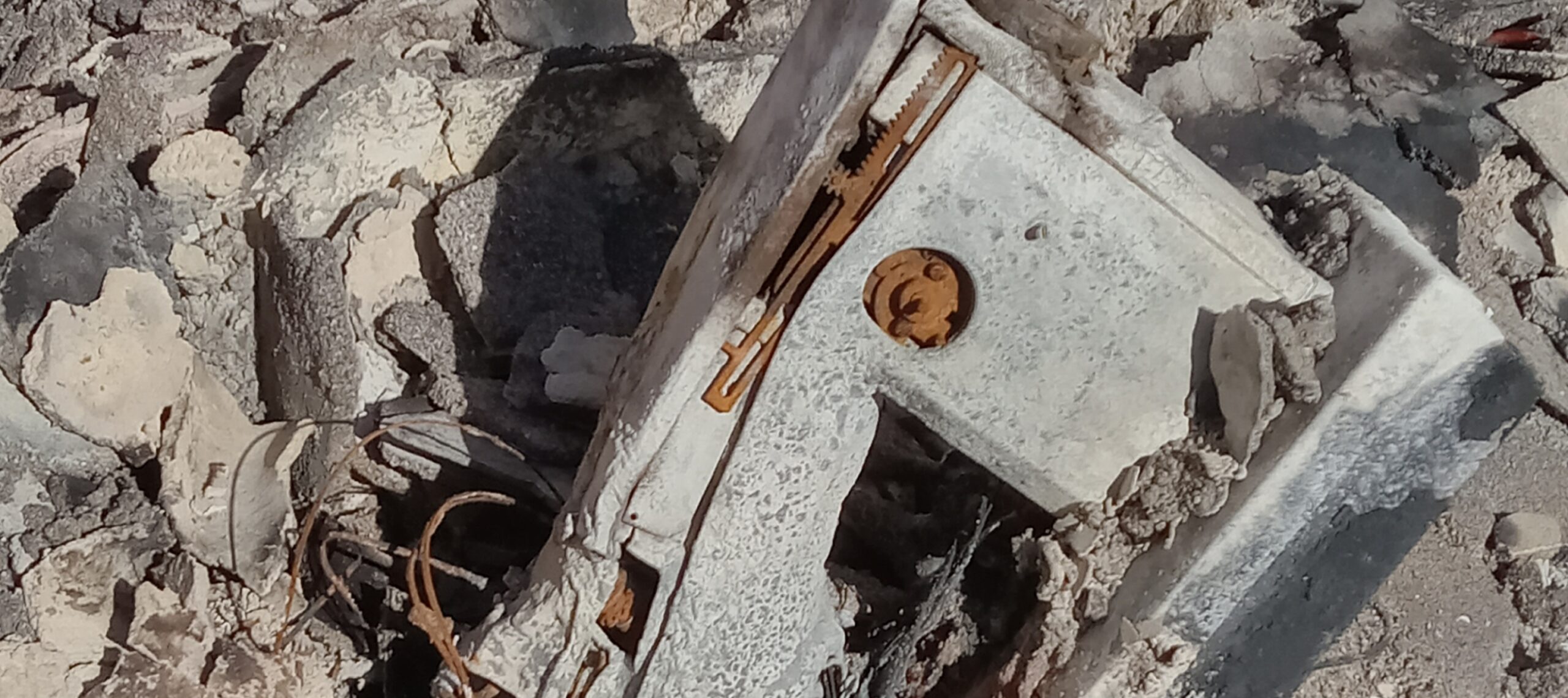 Shoveling away debris revealed charred structural remains like the central pillar,