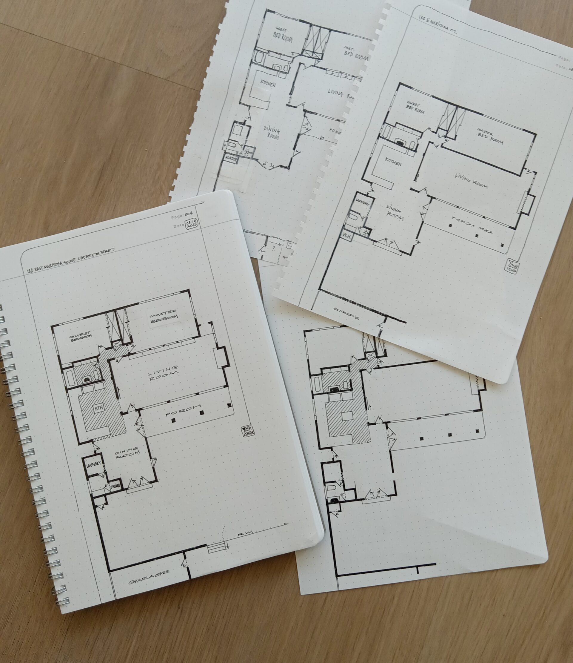 After returning home, we started with hand-drawn sketches. My wife and I brainstormed, exchanging ideas like “Hmm, maybe this way, but no, that doesn’t work,”