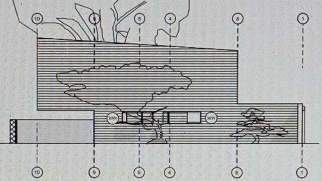 1948年の竣工時と2003年の改築時の青写真(設計図)