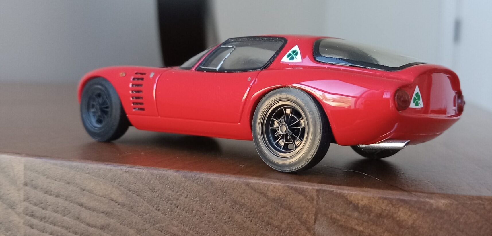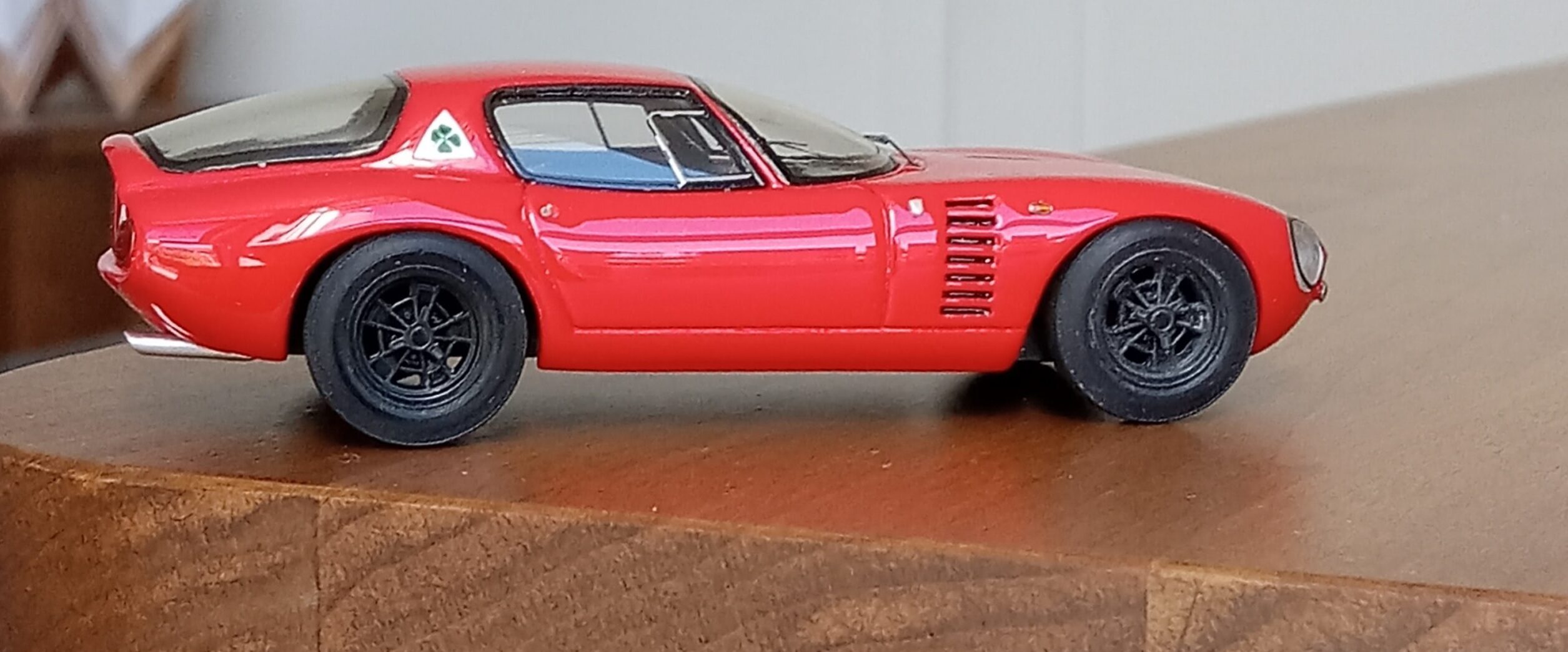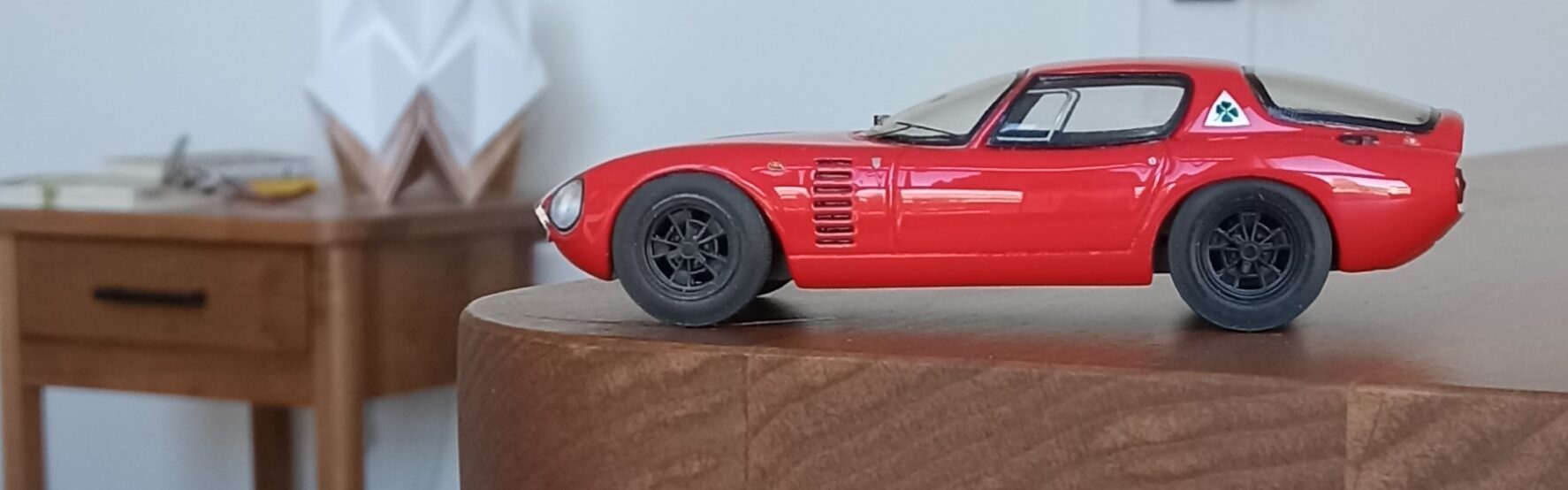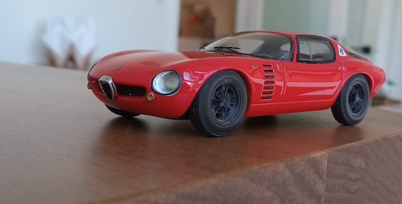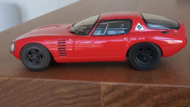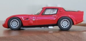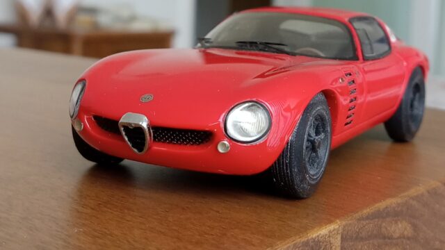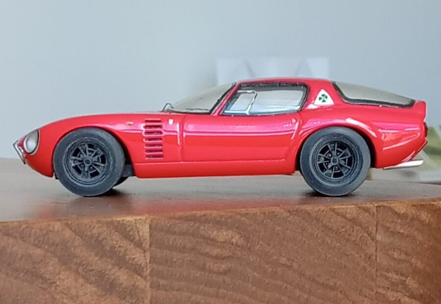 (NEO社製、1/43 アルファロメオ・カングーロ、1964 (イタリアンレッド)+3D プリントしたタイヤ、ホイールパーツで改造)