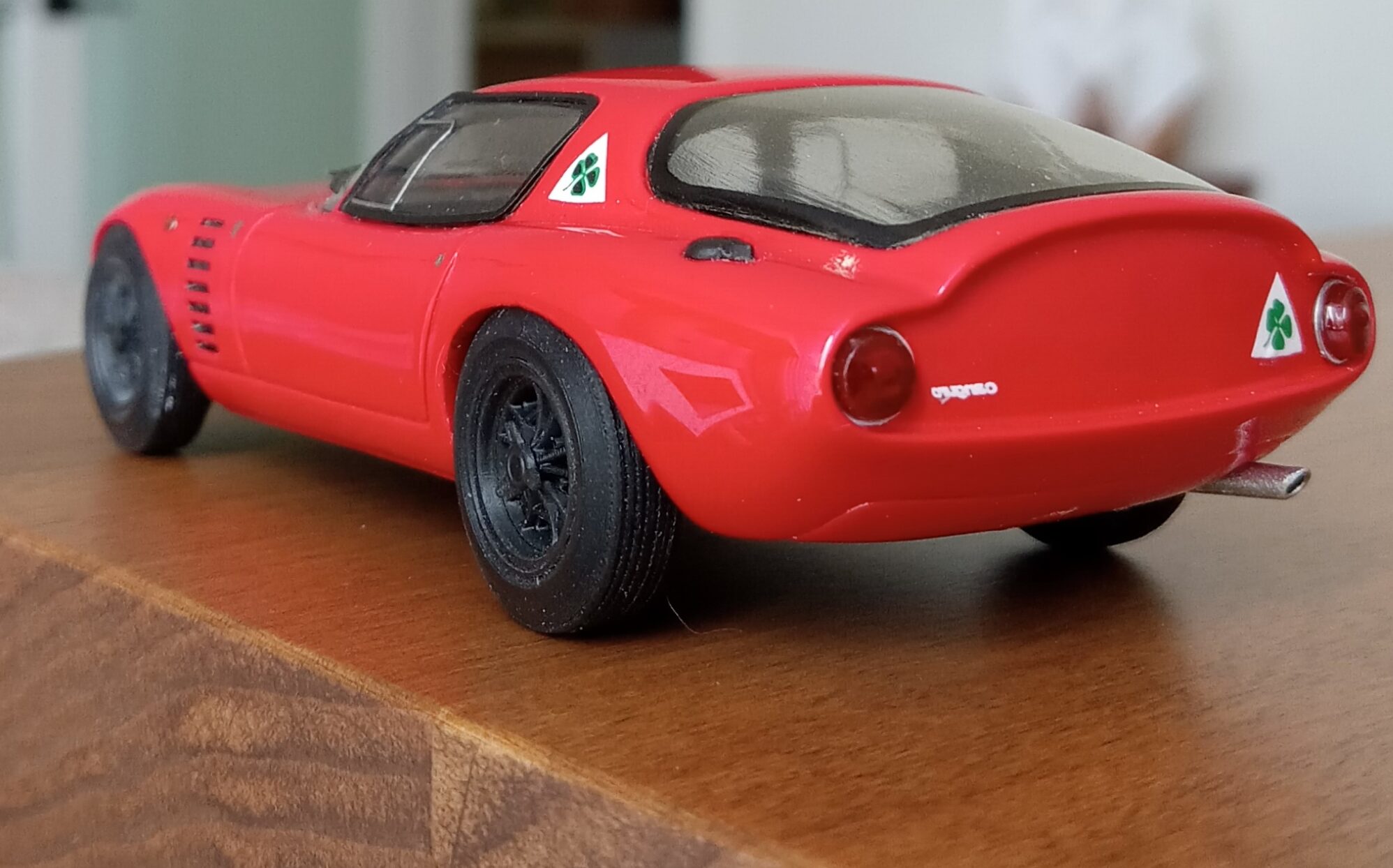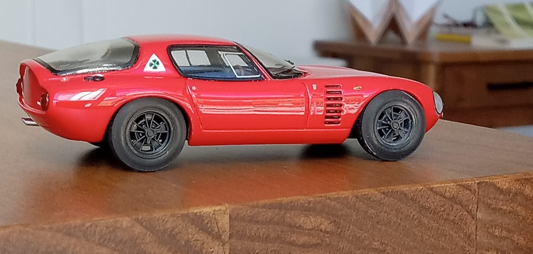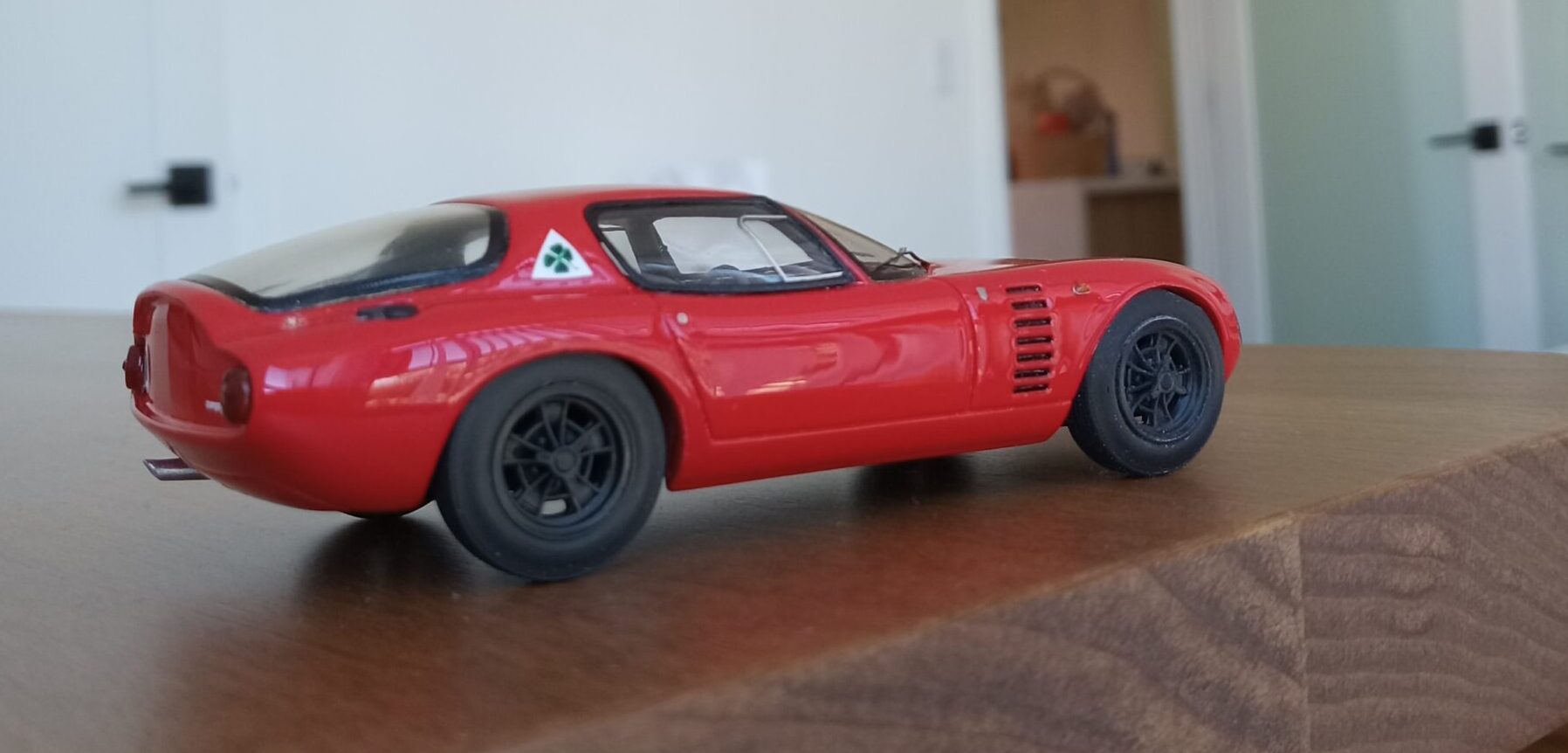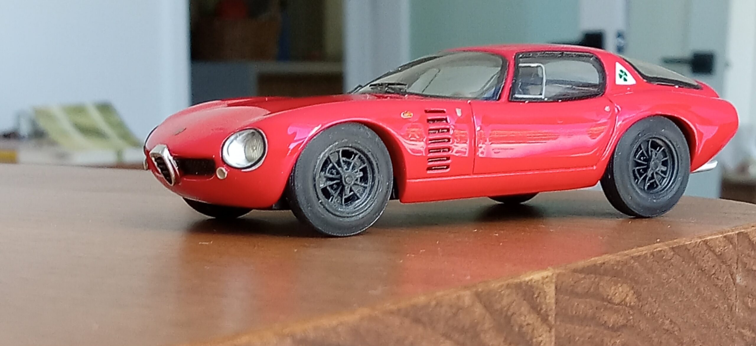 (NEO社製、1/43 アルファロメオ・カングーロ、1964 (イタリアンレッド)+3D プリントしたタイヤ、ホイールパーツで改造)