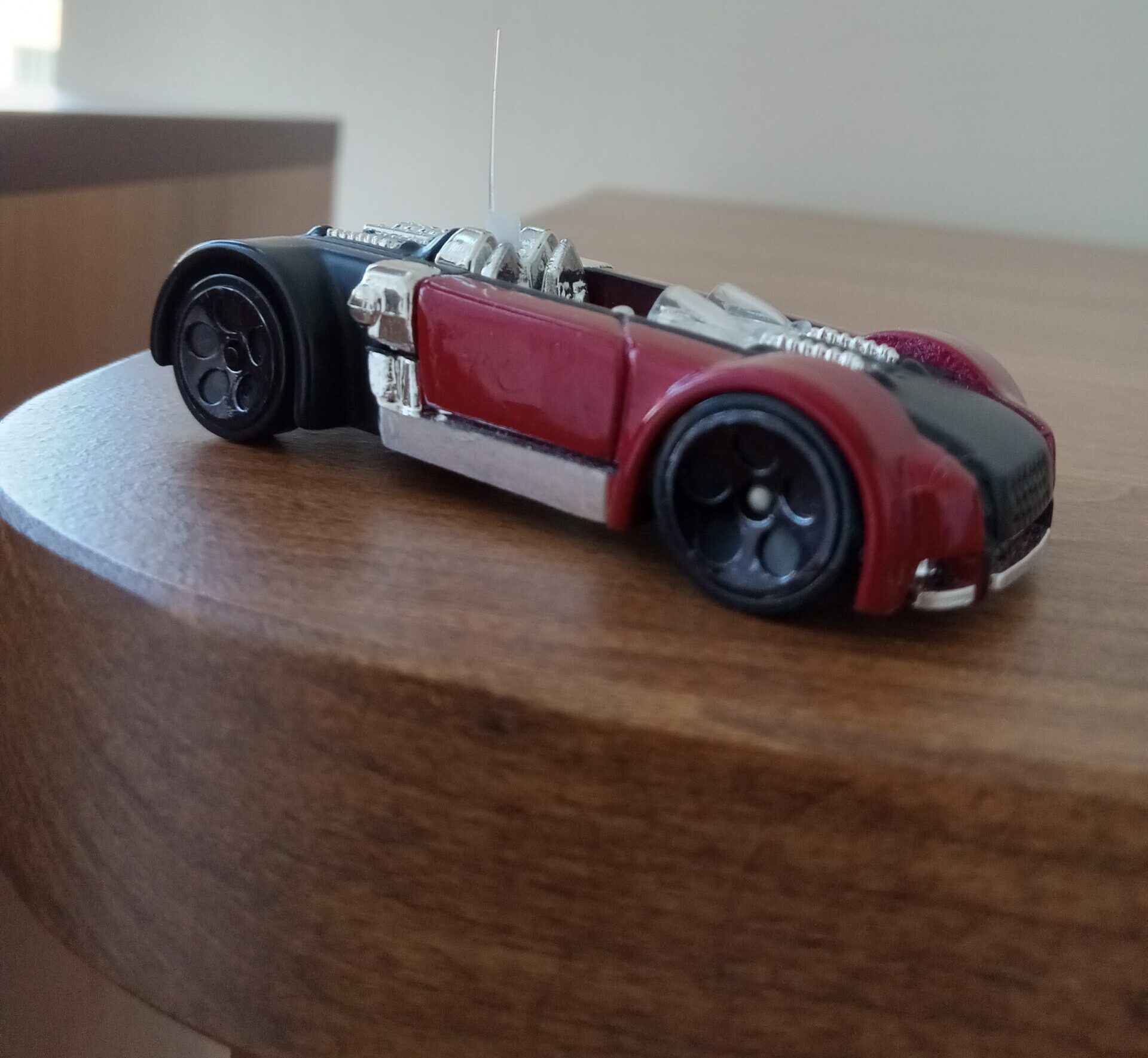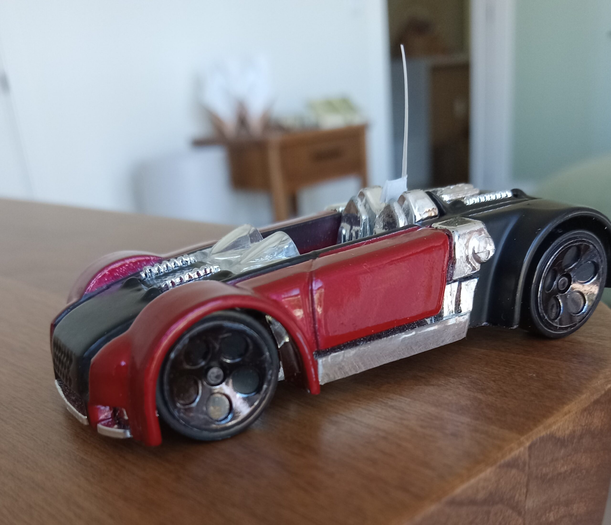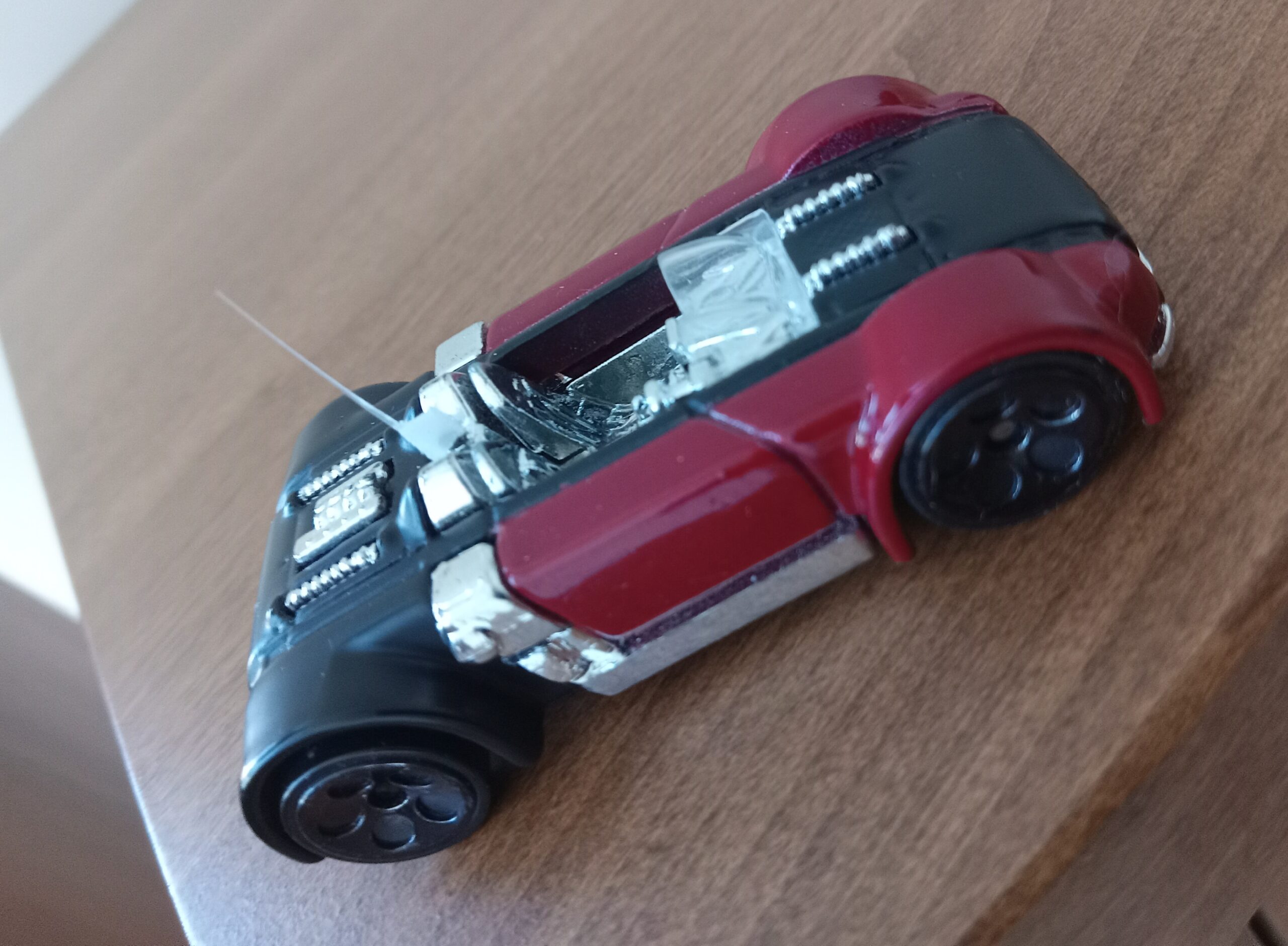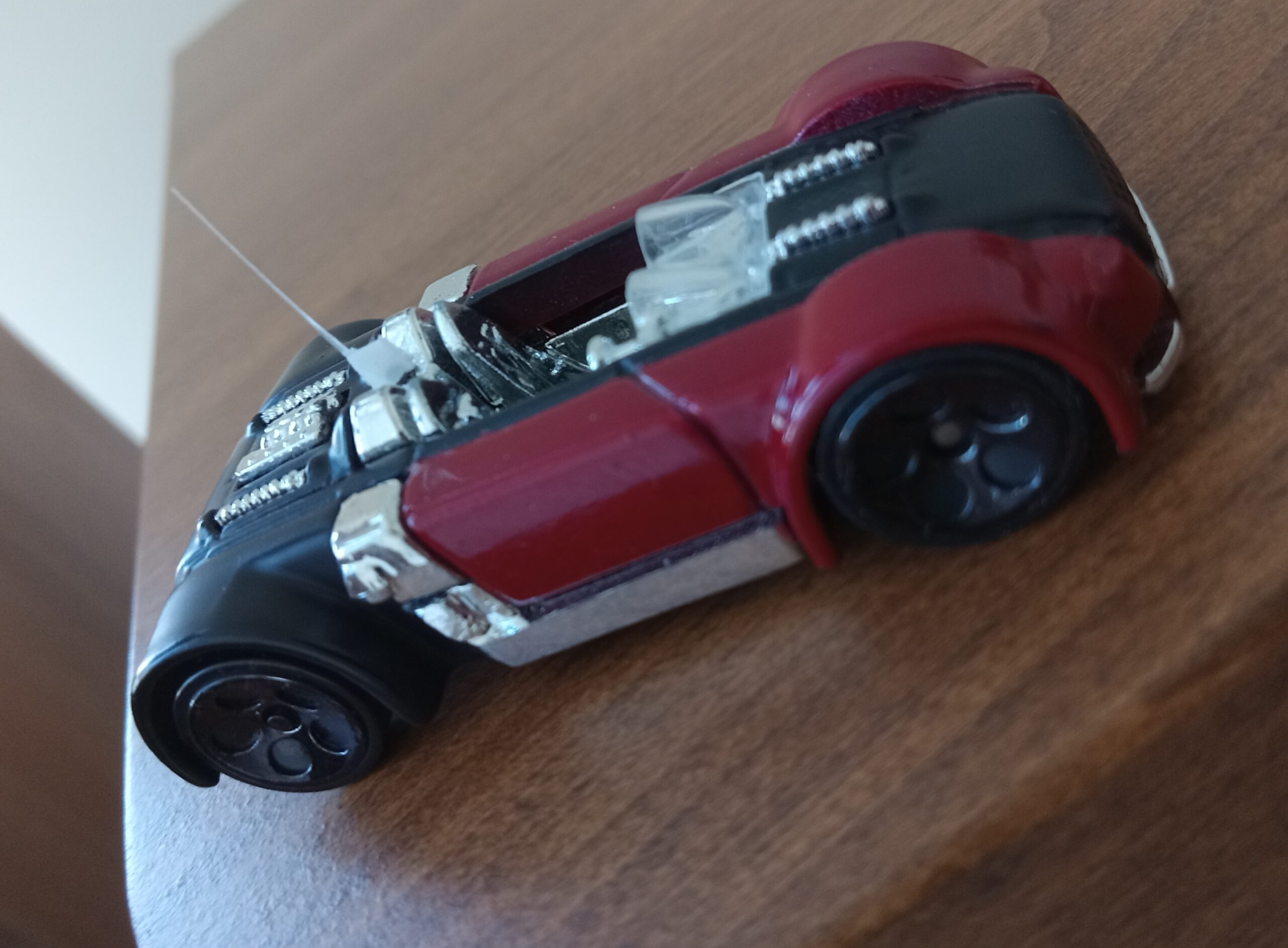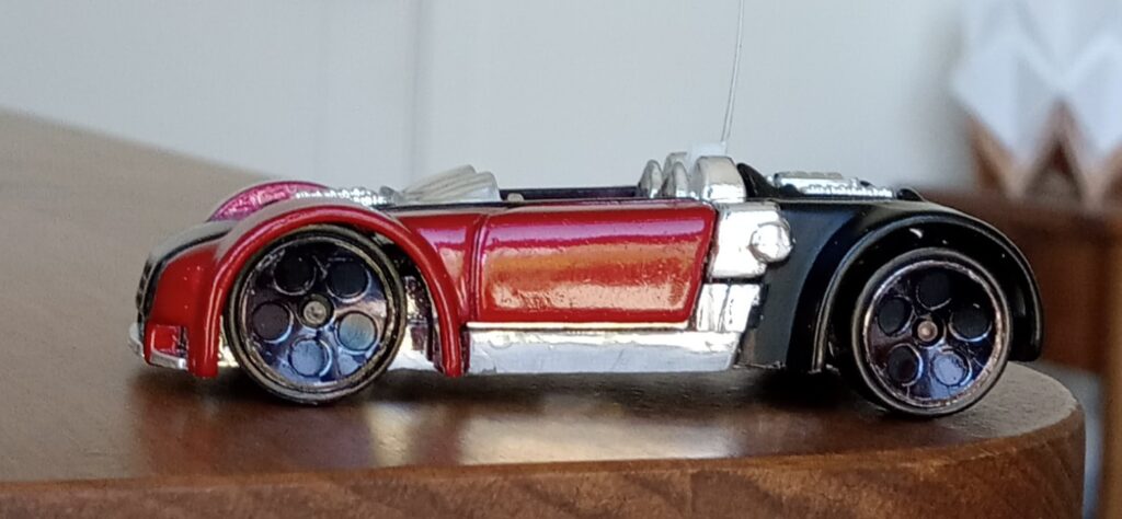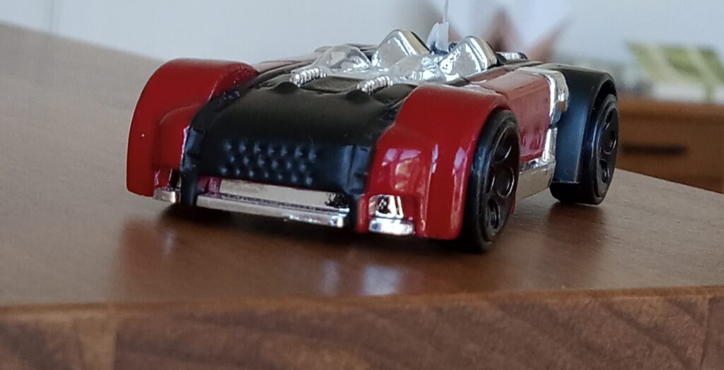 ‘Hmm, maybe like this… no, like that…’ (This mini car, partly thanks to its slightly emphasized front and rear fenders, feels absolutely amazing when rolled around in your palm!!)