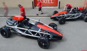 (I find the original model with its Rover 1.6-liter engine more appealing than the latest Atom 4.0 packing a 350hp Honda engine. Its appearance, a tubular frame covered by minimal fairings and fender covers, is in a way more spartan than even F1.)