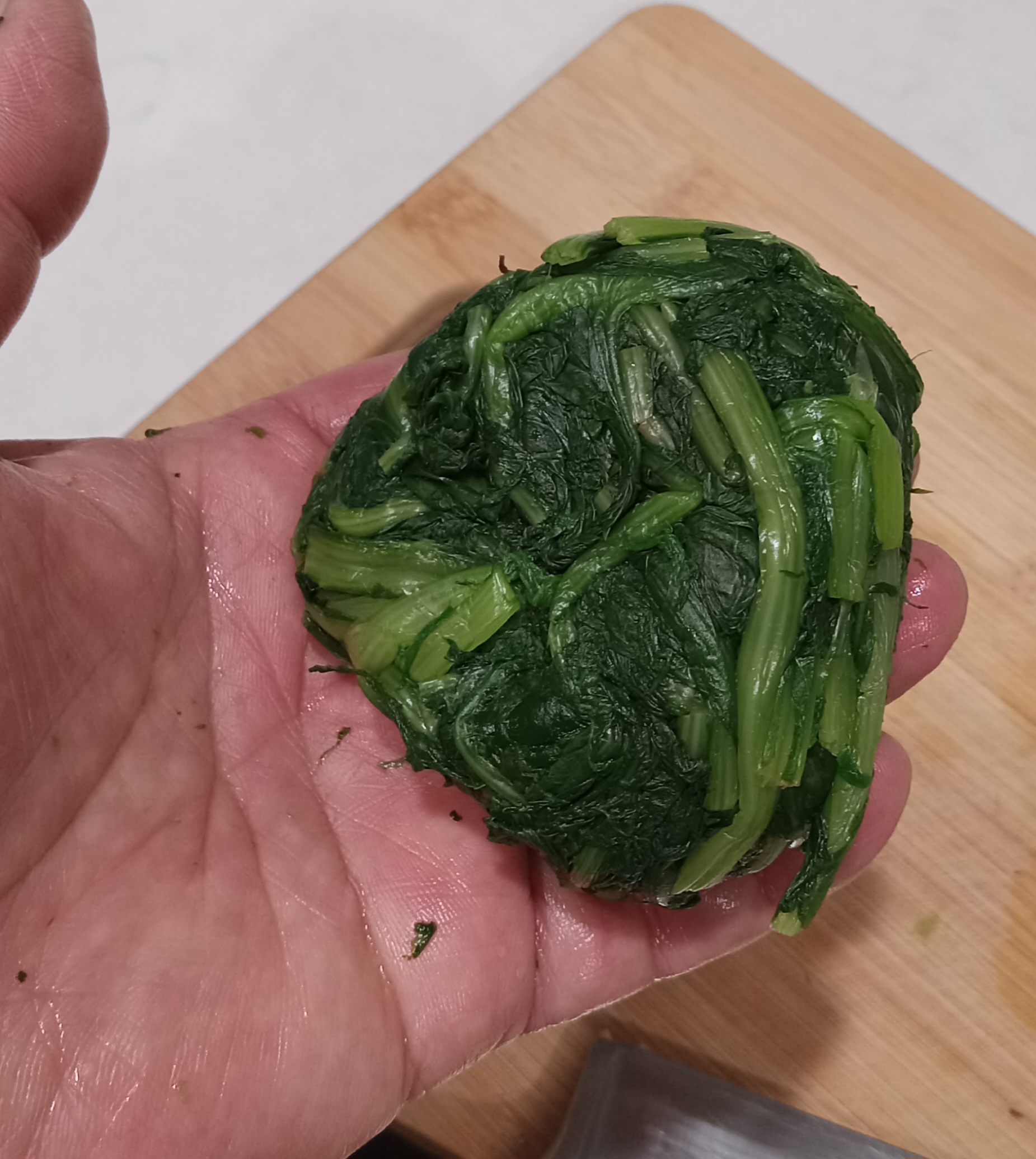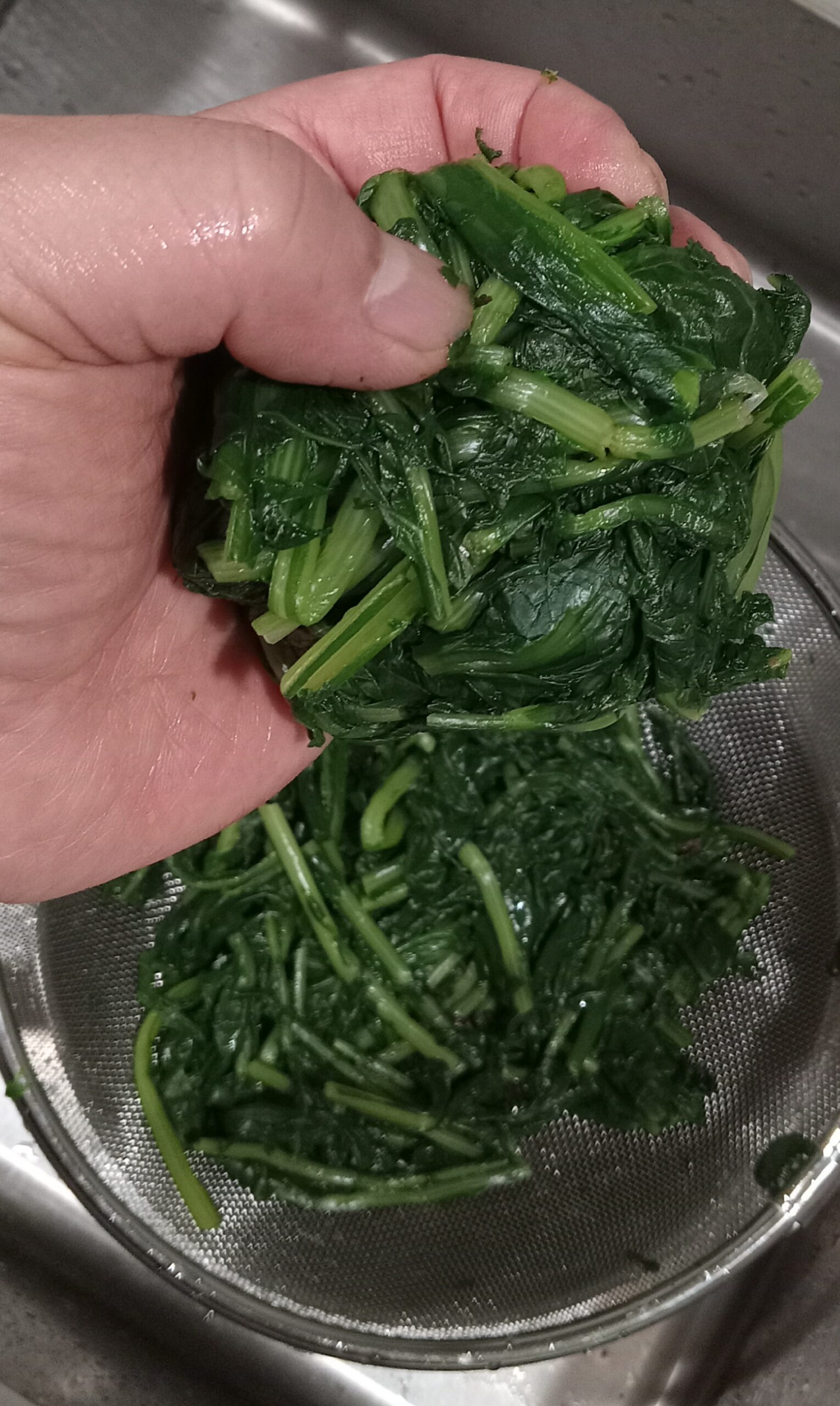 4. Drain and cool. Squeeze out excess water vigorously with both hands.