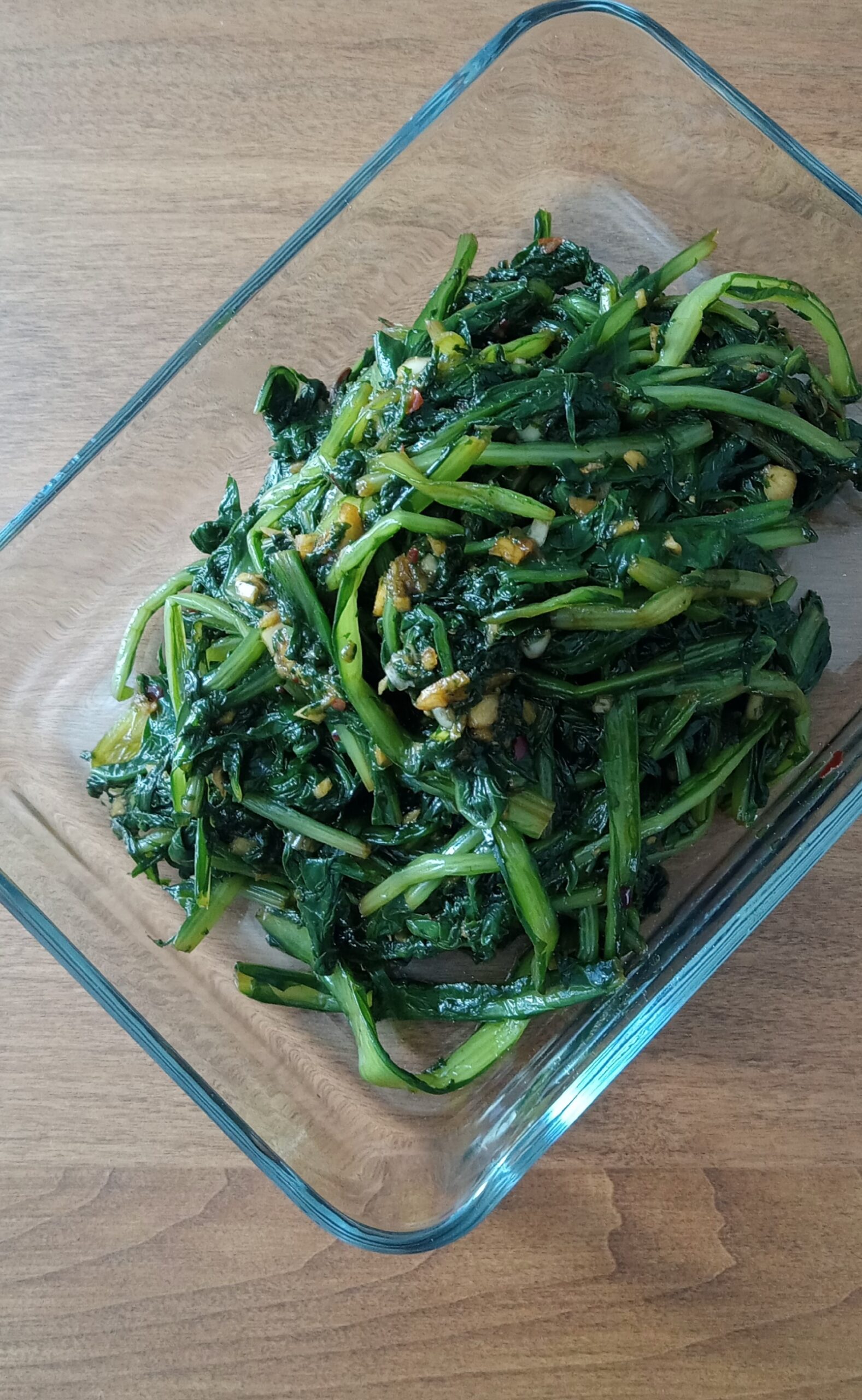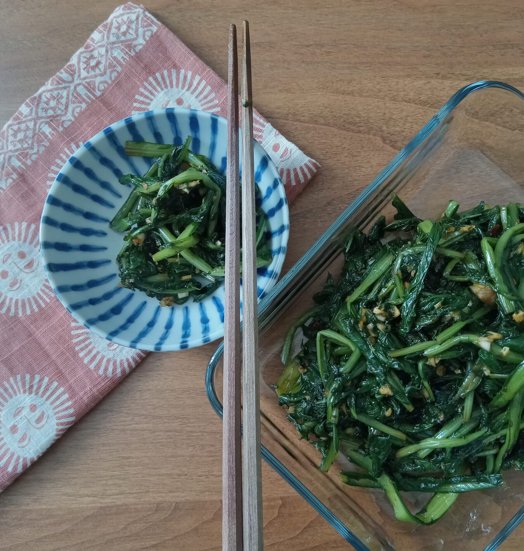 *a flavor and texture halfway between Japanese ohitashi and Korean namul,