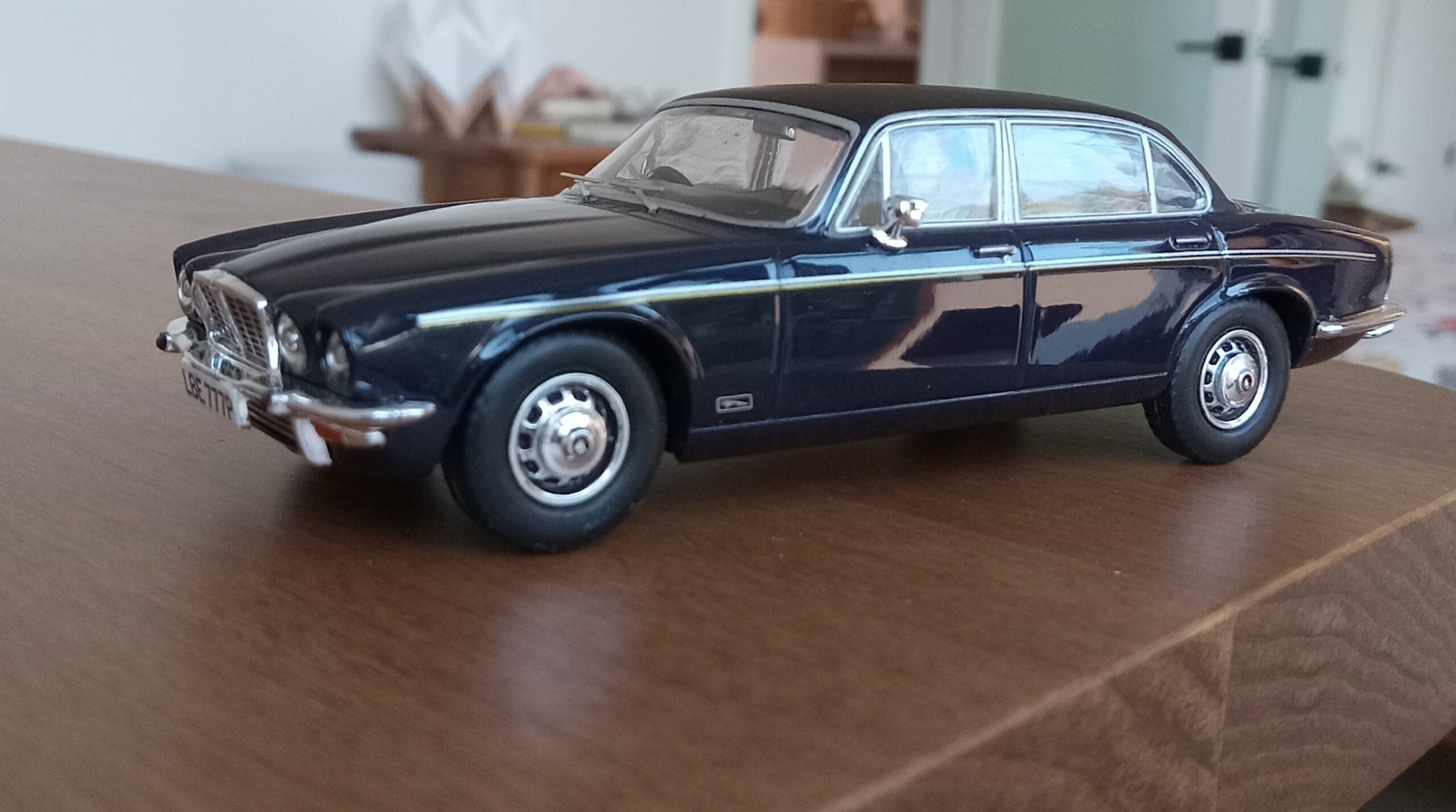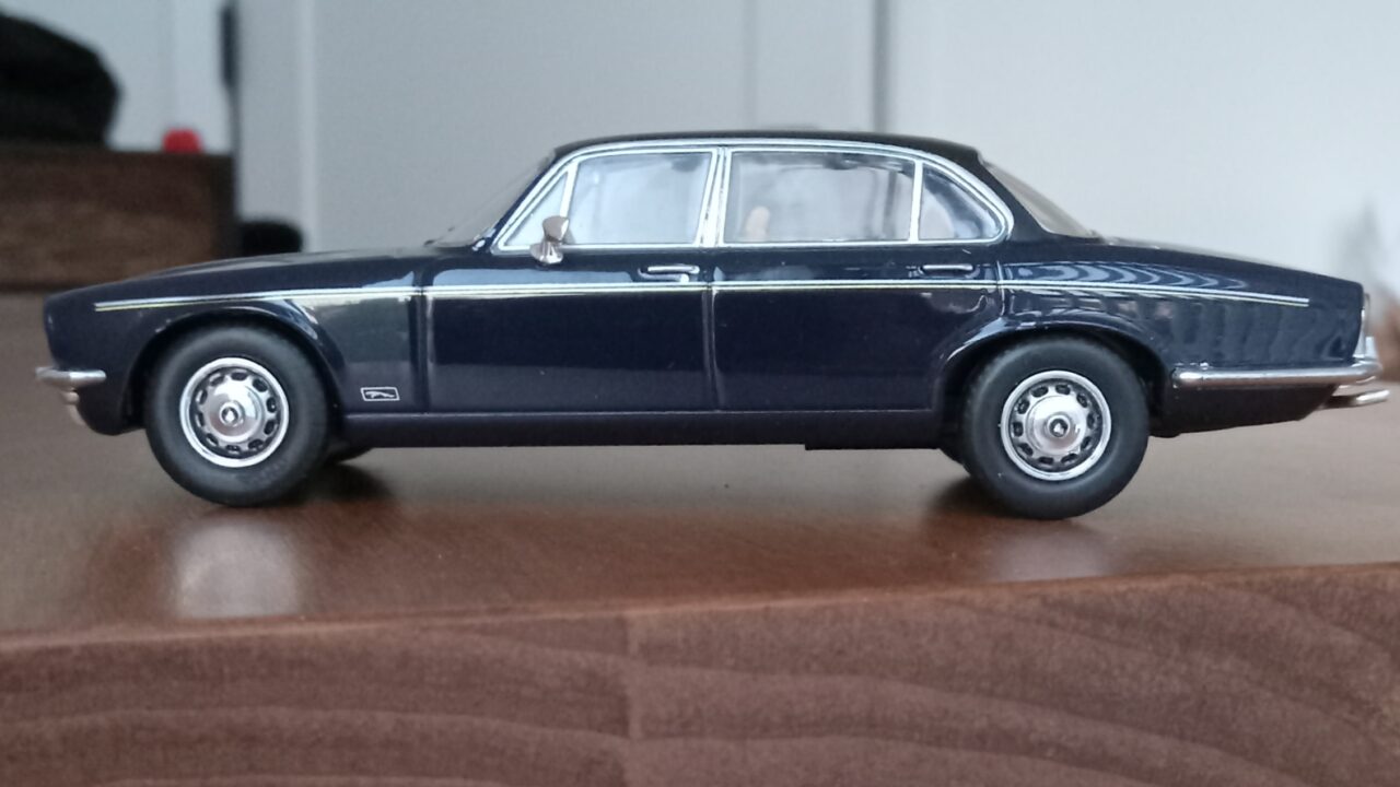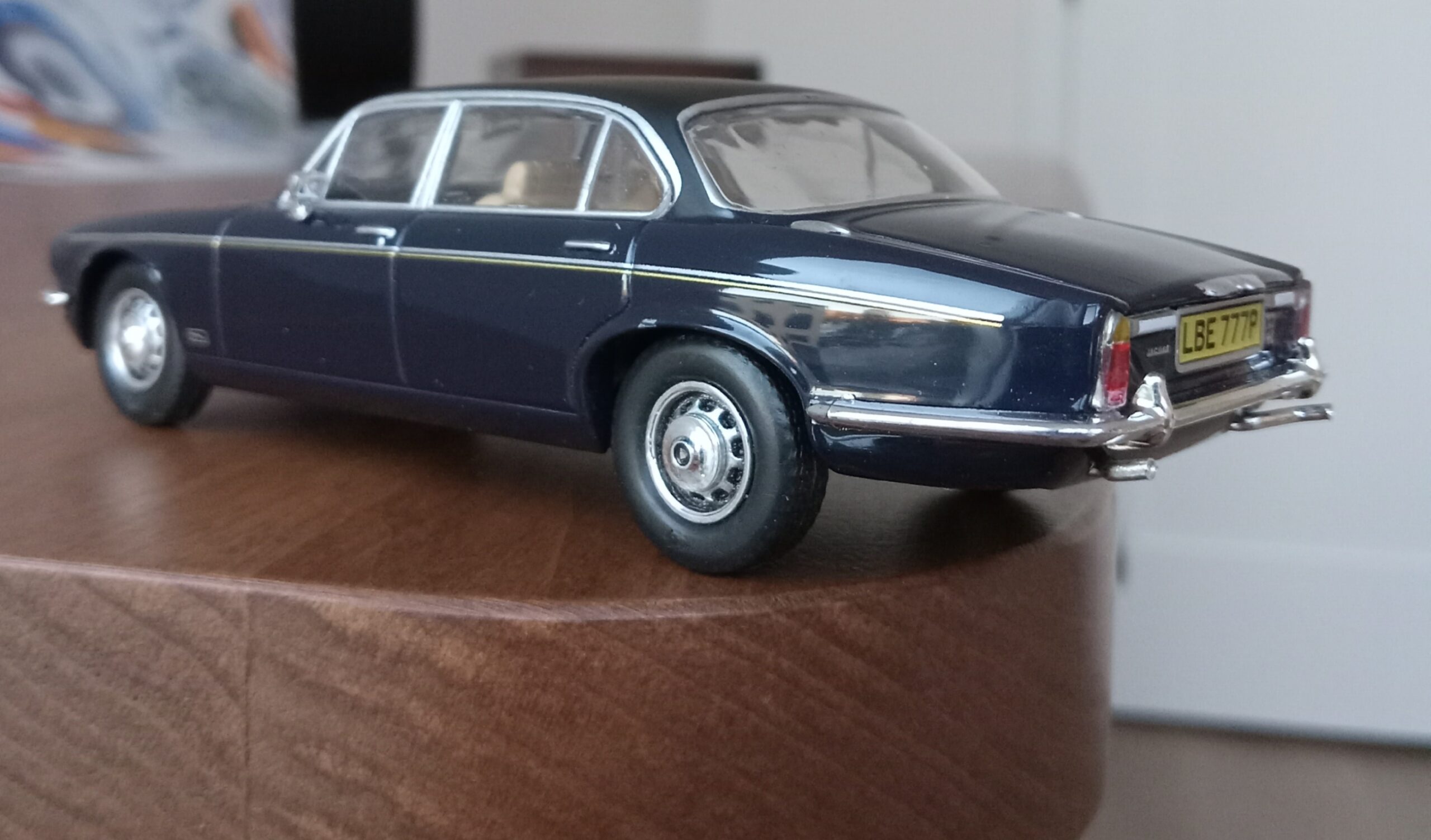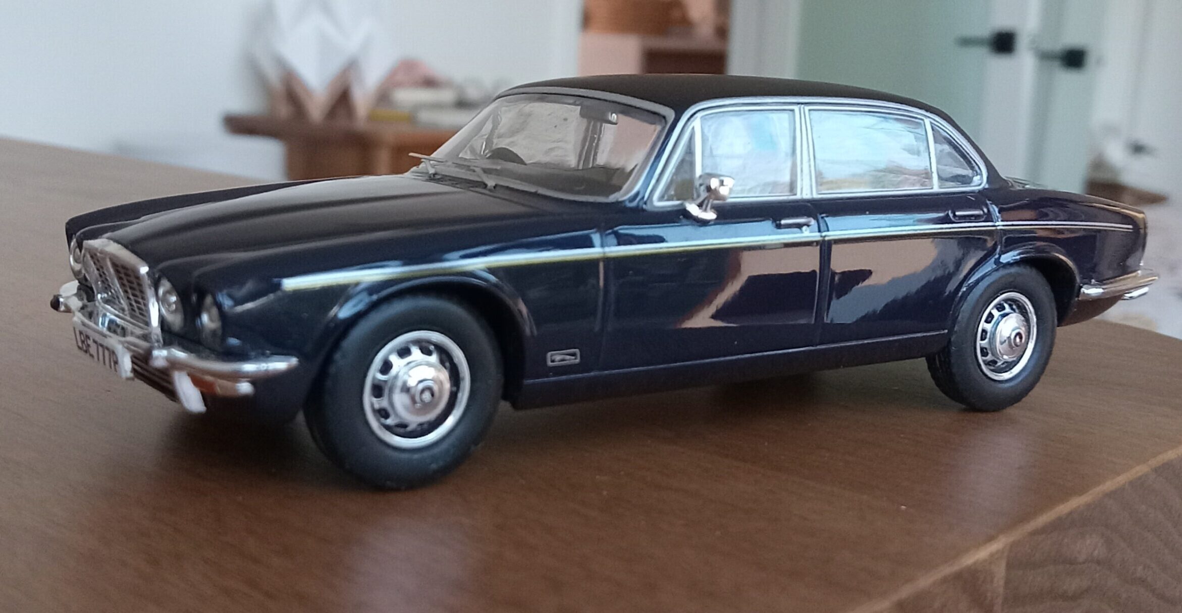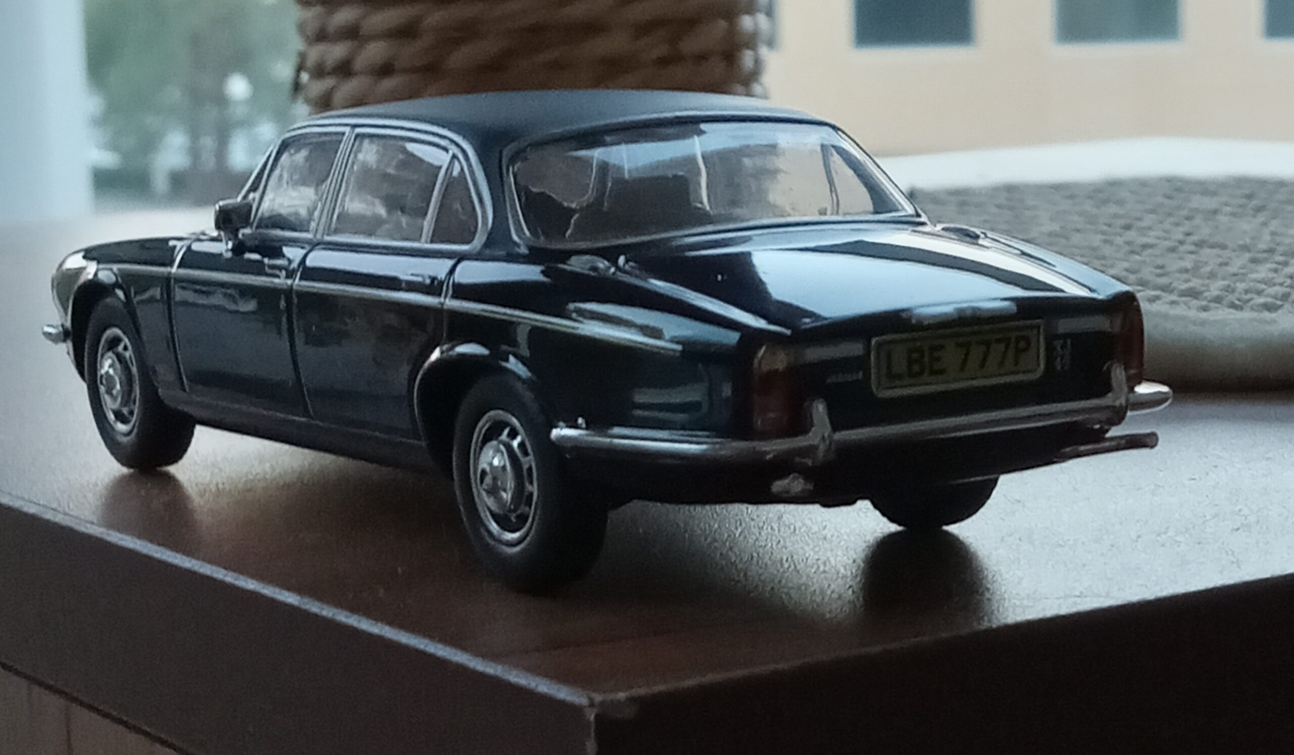 While searching for a well-made model to feature in this article, I discovered that my favorite manufacturer, Vanguards, had released a Series 2 XJ6, so I quickly ordered it from the UK. I also acquired a green XJ12 in a different color, but the dark navy photographed better, so I used this one.