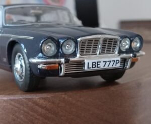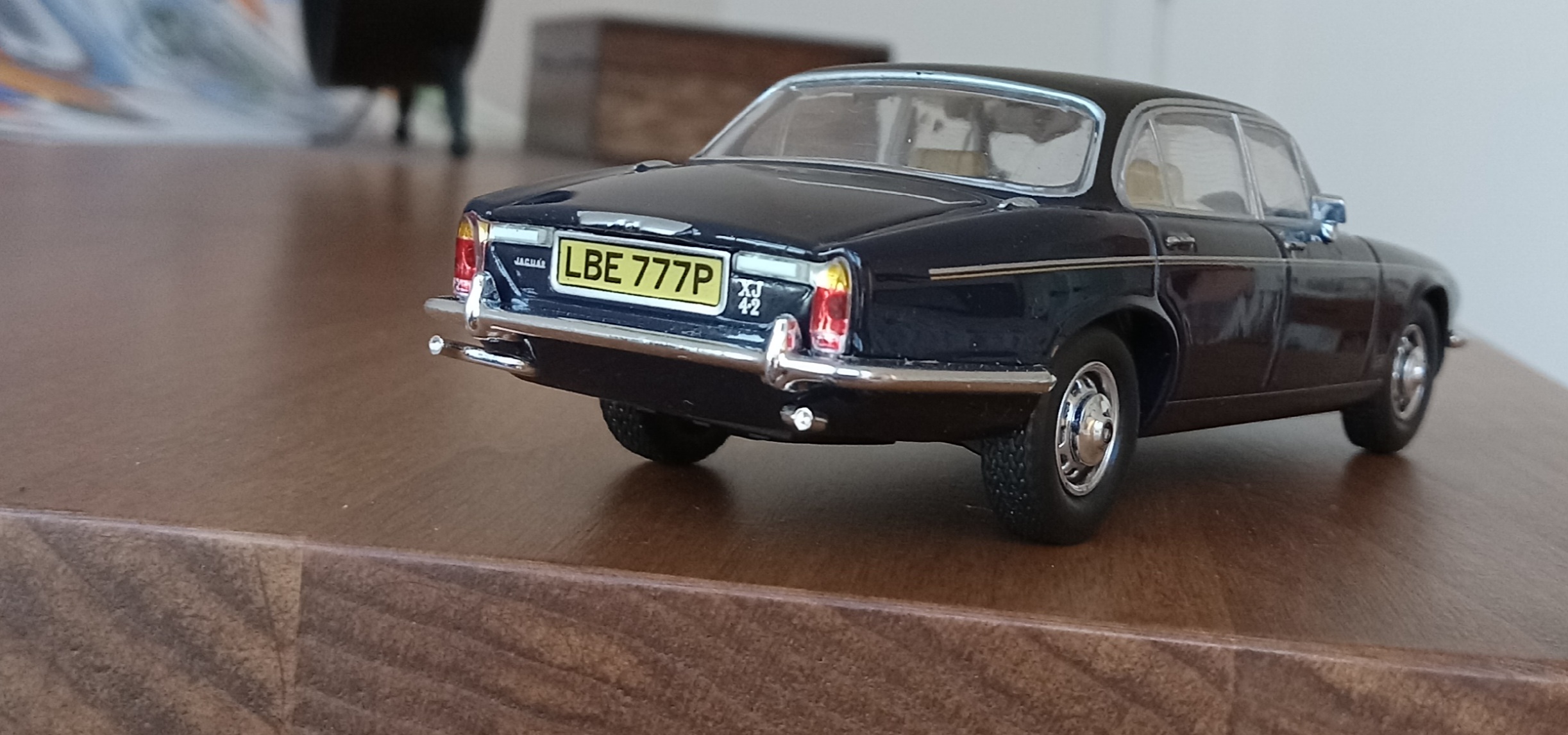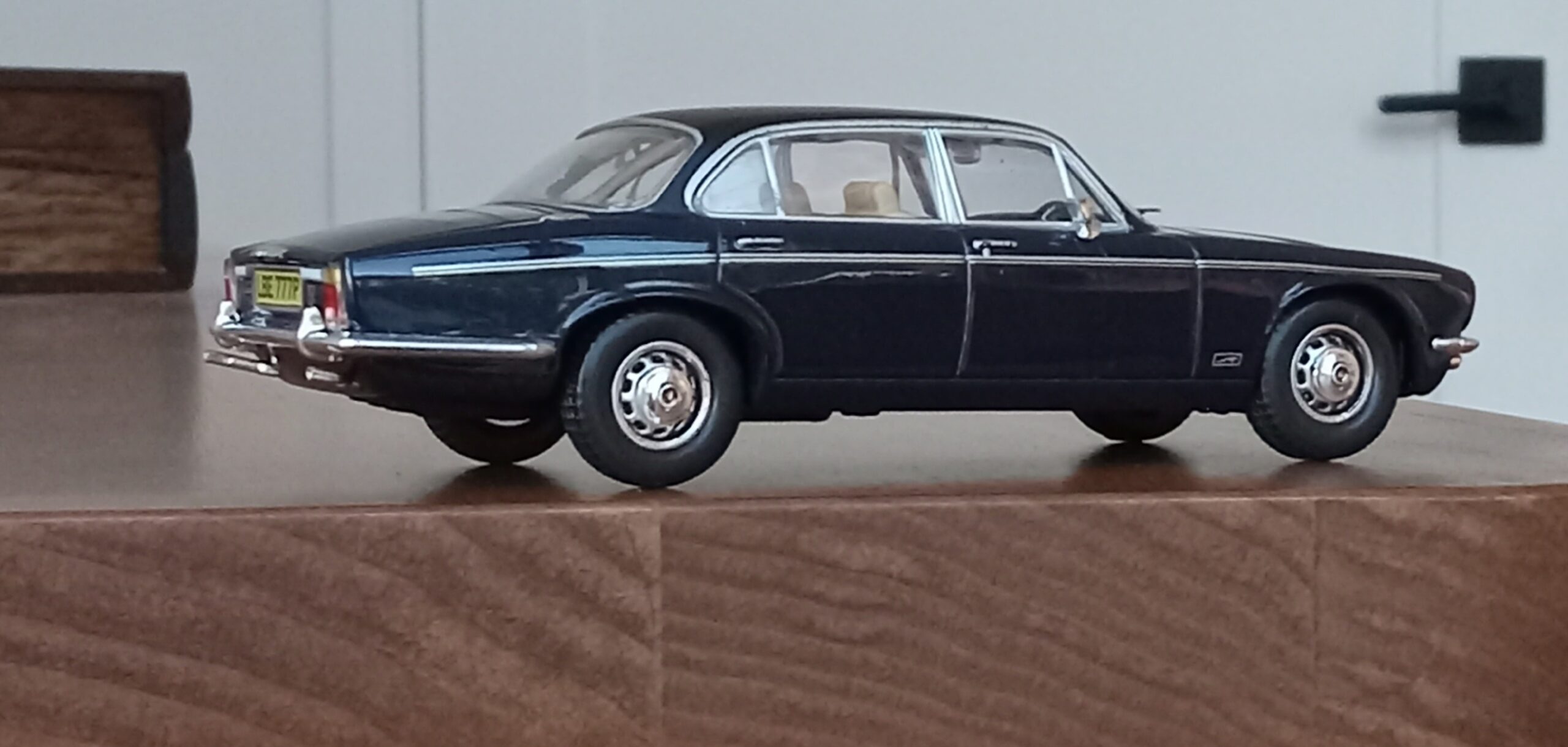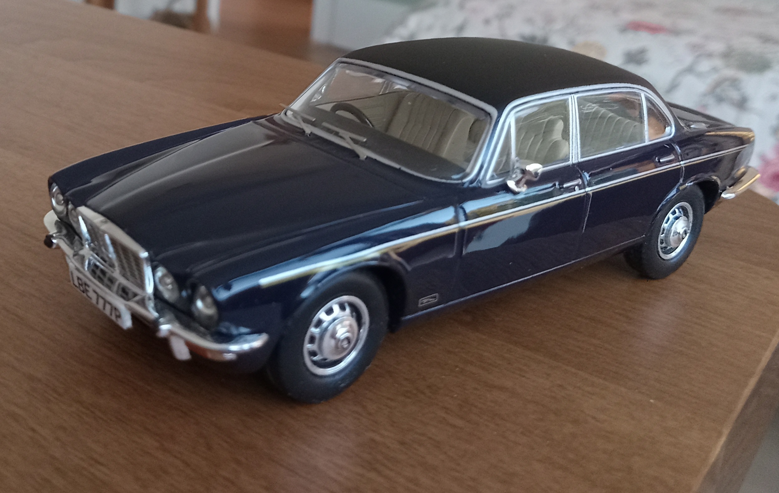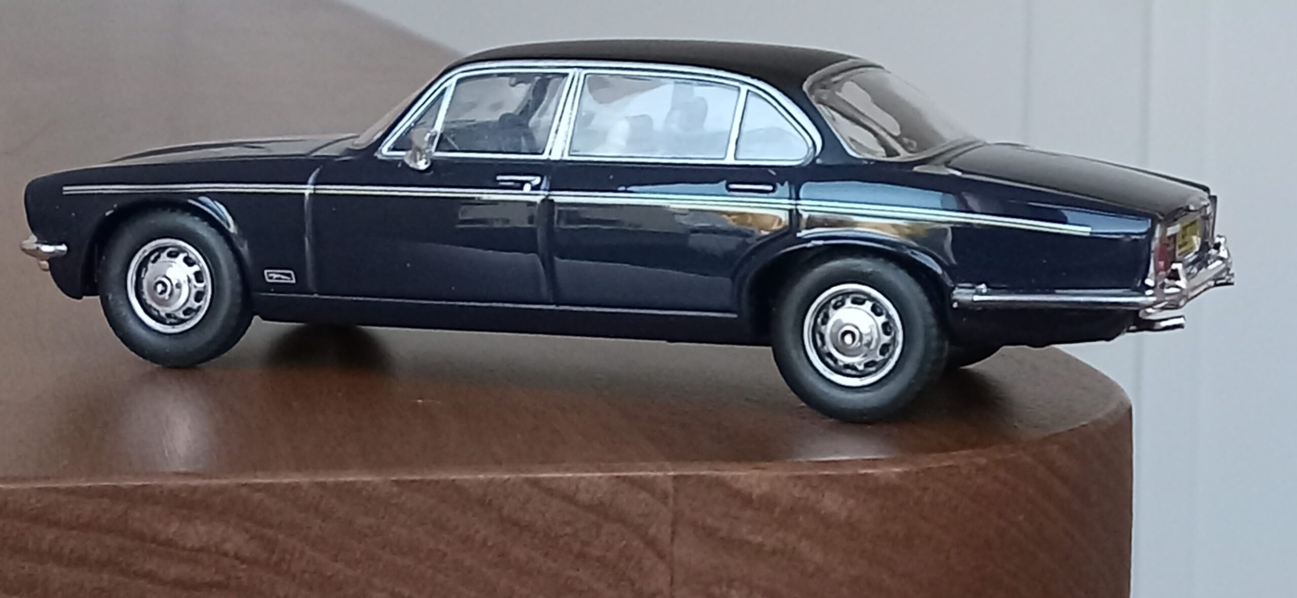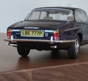 While searching for a well-made model to feature in this article, I discovered that my favorite manufacturer, Vanguards, had released a Series 2 XJ6, so I quickly ordered it from the UK. I also acquired a green XJ12 in a different color, but the dark navy photographed better, so I used this one.