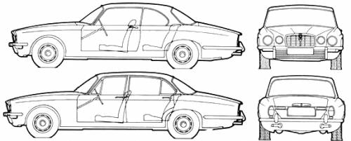 (Though differing in class, the Alfa Romeo Giulia 1750 GTV Veloce, 1967-77, shares a very similar exterior aesthetic with the XJ series, built on a three-dimensional structure)