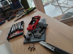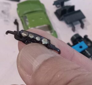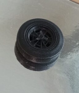 (経年劣化で溶け始めたタイヤに代わり、イーベイにて3dプリント製のタイヤホイールを入手、タイヤ軸の位置決めに注力して、何とかまとまりました。)