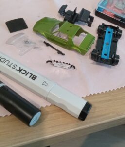 マスキング後、クローム・シルバーマーカーペンにてモール類を塗装)