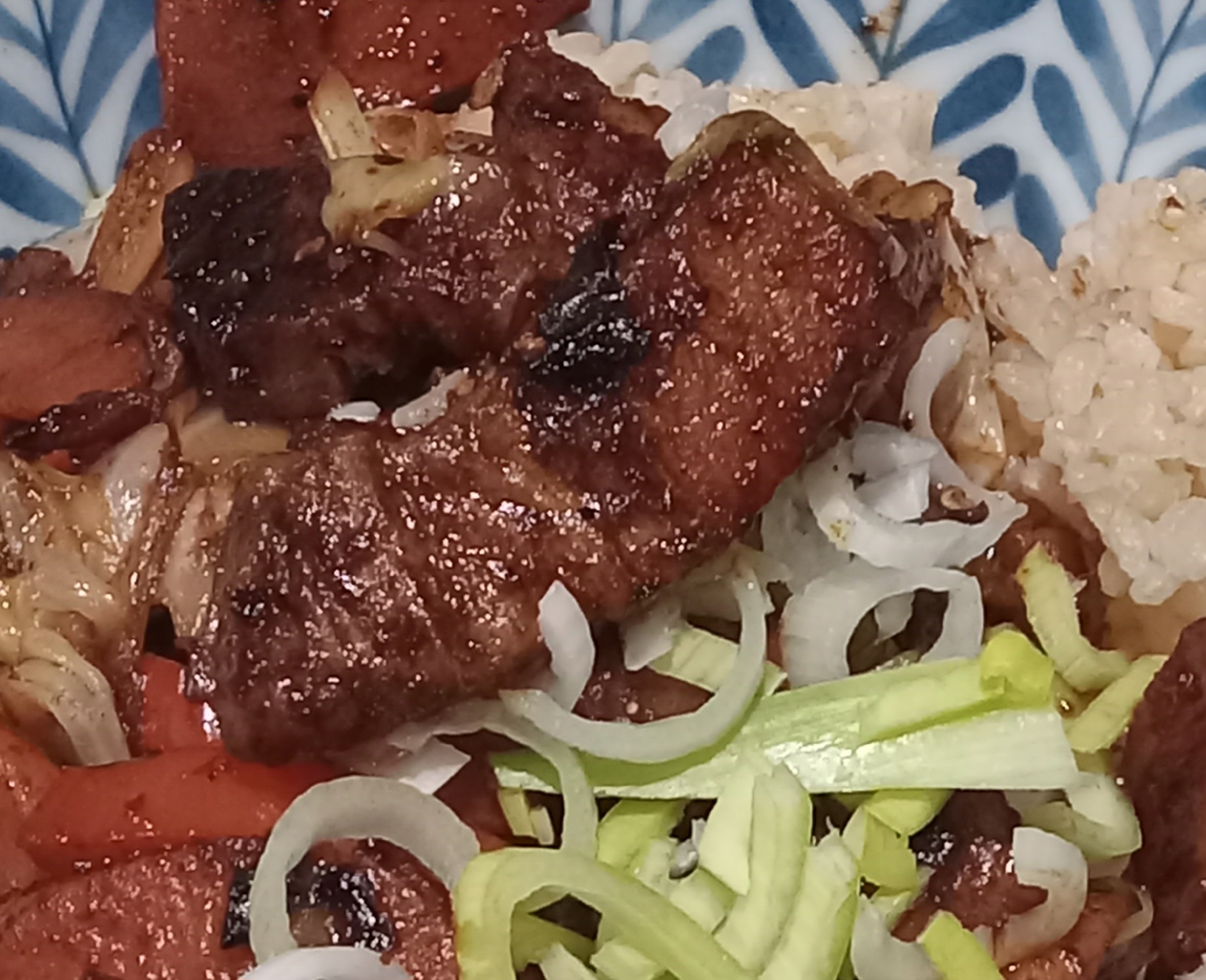 topped with Korean-style kalbi beef.