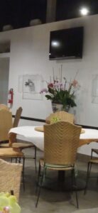 サラダンさんでは、テーブルのお花や内装に飾られたお花もすべて生花が使われ、ナプキンの飾り方、お店のロゴや、メニューのデザインも気の利いたもので、