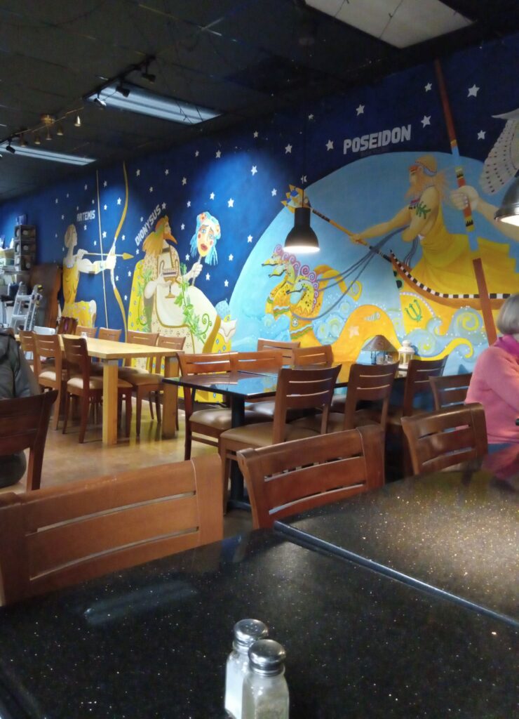 we visited Greek Cafe, located just a 5-minute walk from our burned-down home.