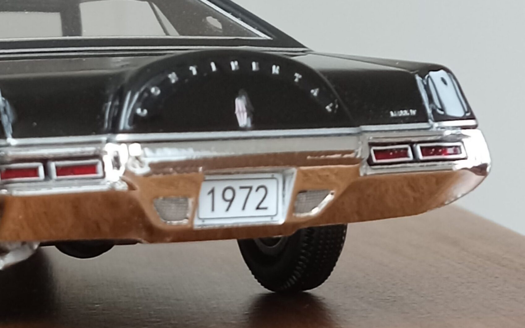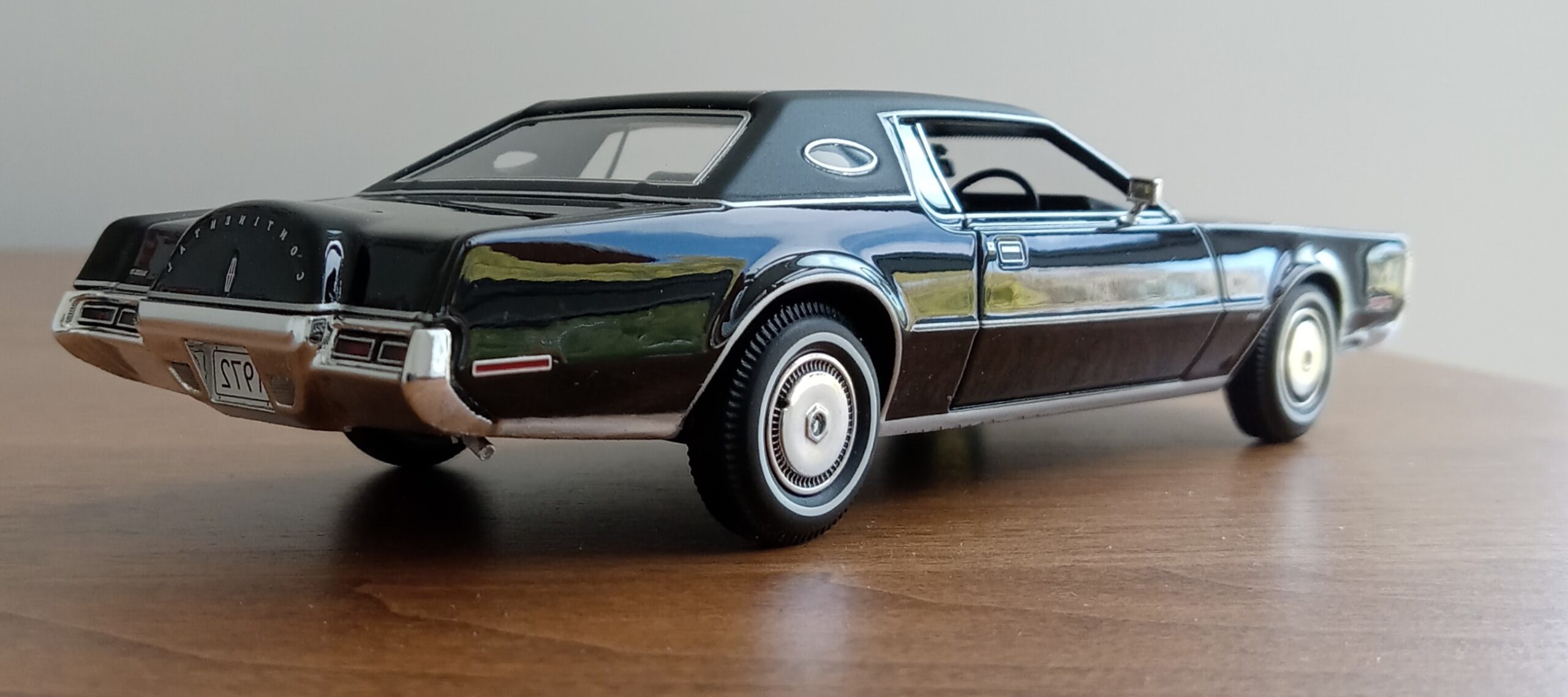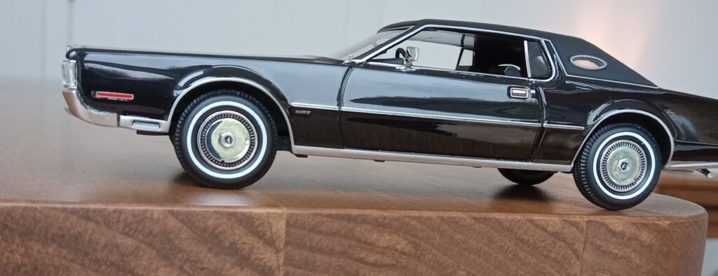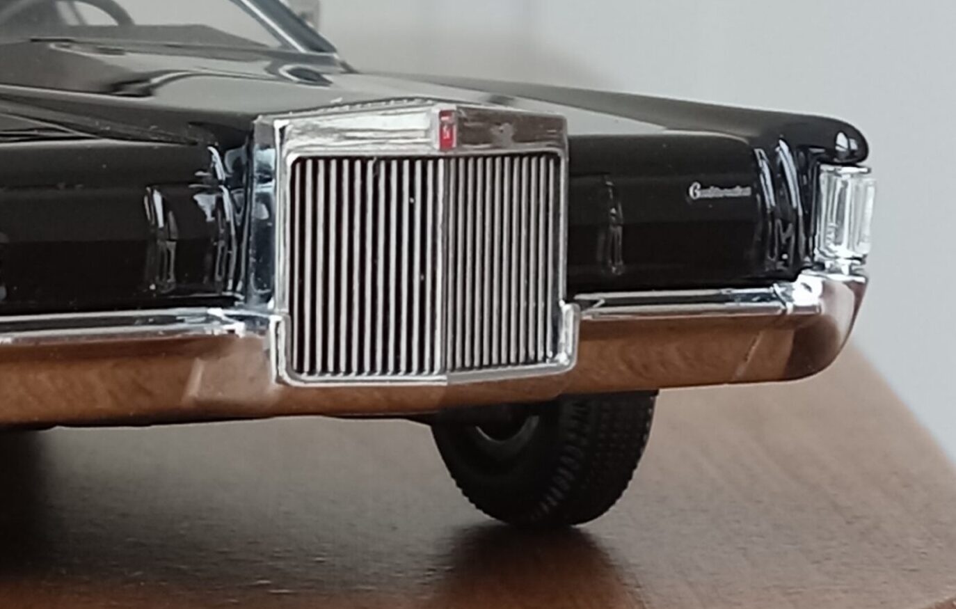 (GLM Models製, 1/43 リンカーン・コンチネンタル MK4, 1972 (ブラック)改造箇所:車軸微調整、ドア下ロッカー部からリア・オーバーハング部分下を薄々攻撃+銀で再塗装)