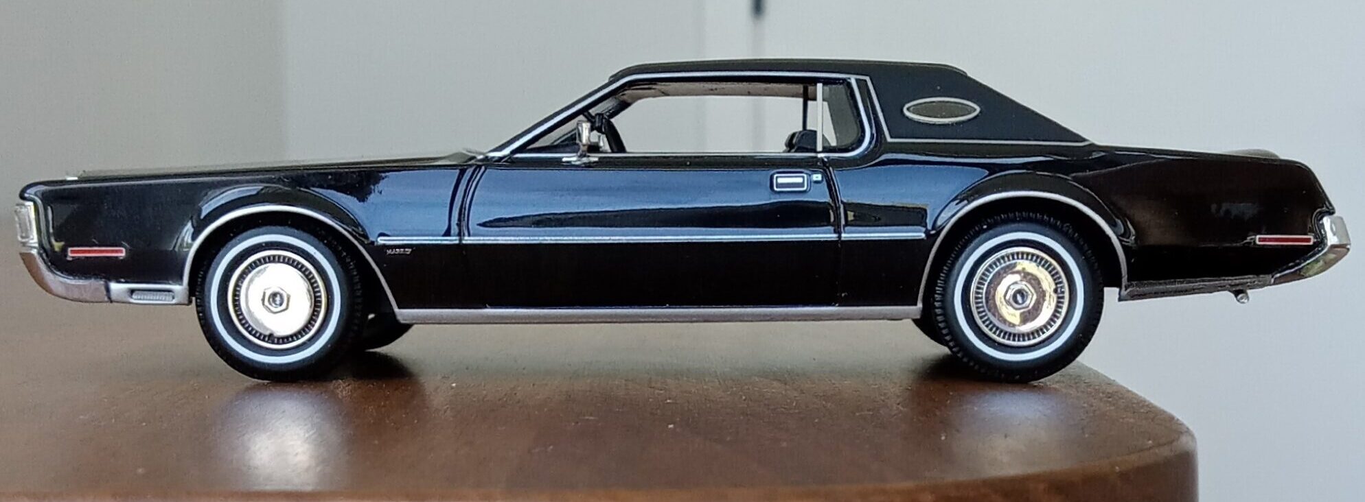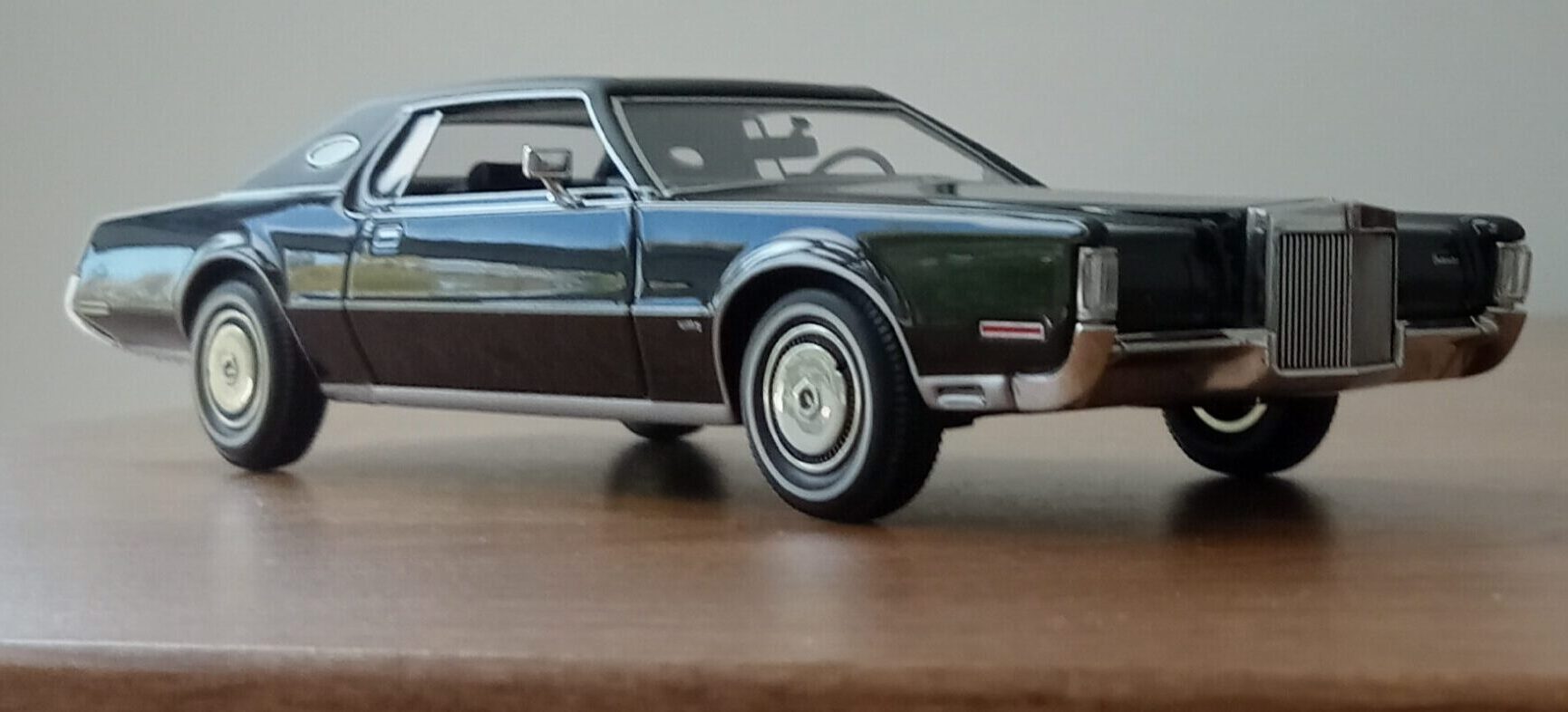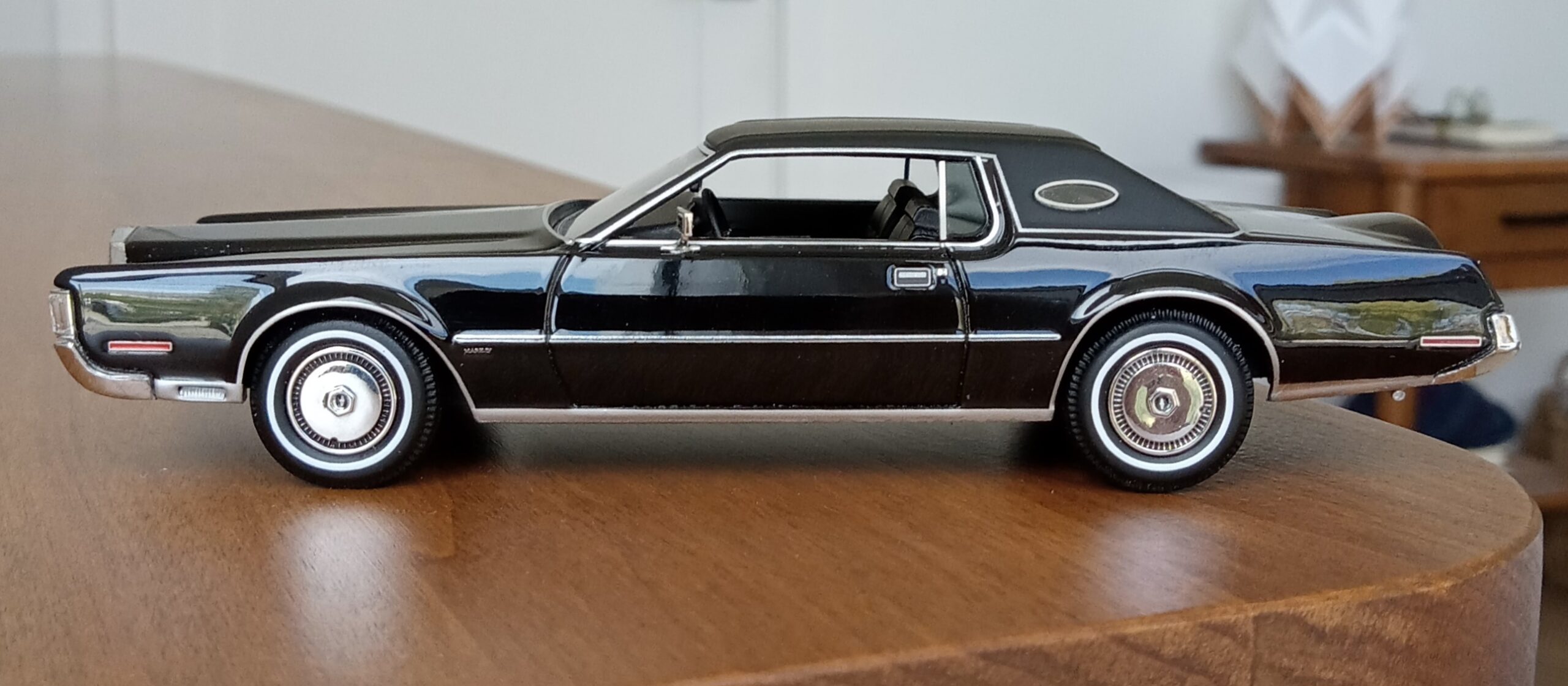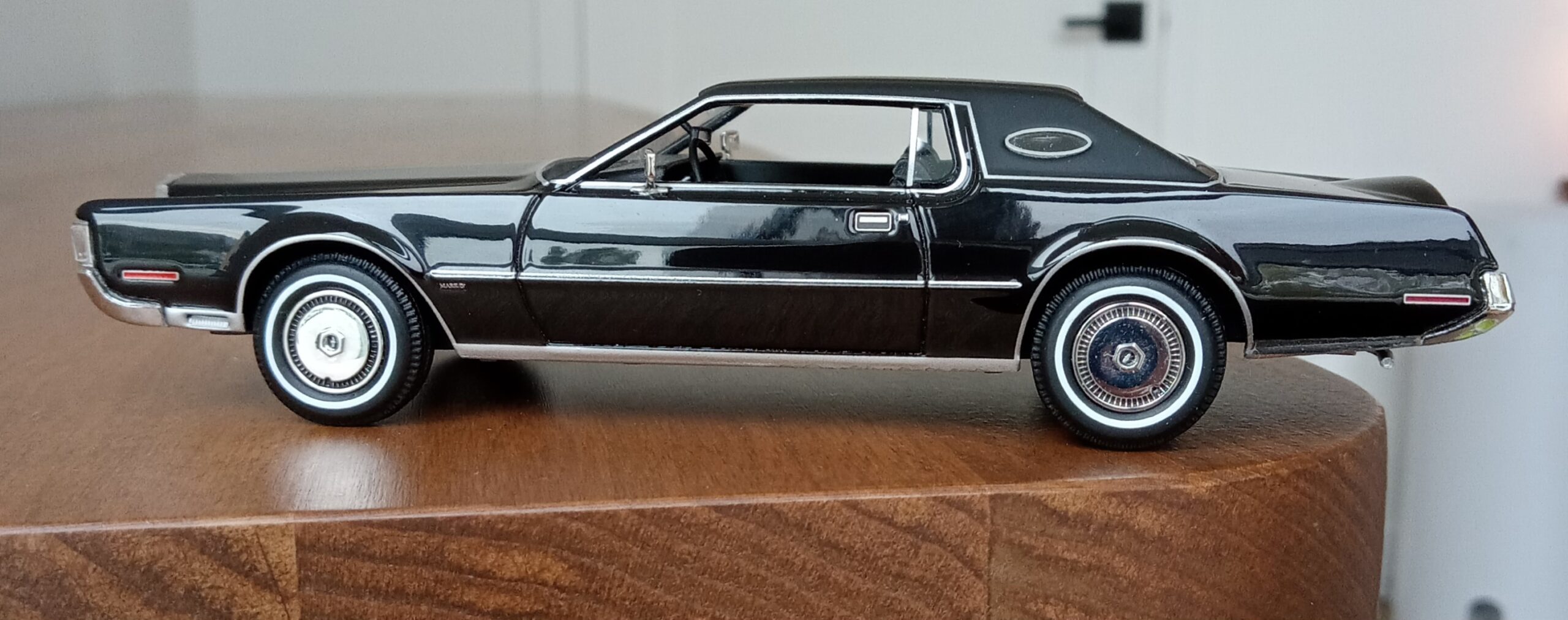 (GLM Models製, 1/43 リンカーン・コンチネンタル MK4, 1972 (ブラック)改造箇所:車軸微調整、ドア下ロッカー部からリア・オーバーハング部分下を薄々攻撃+銀で再塗装)