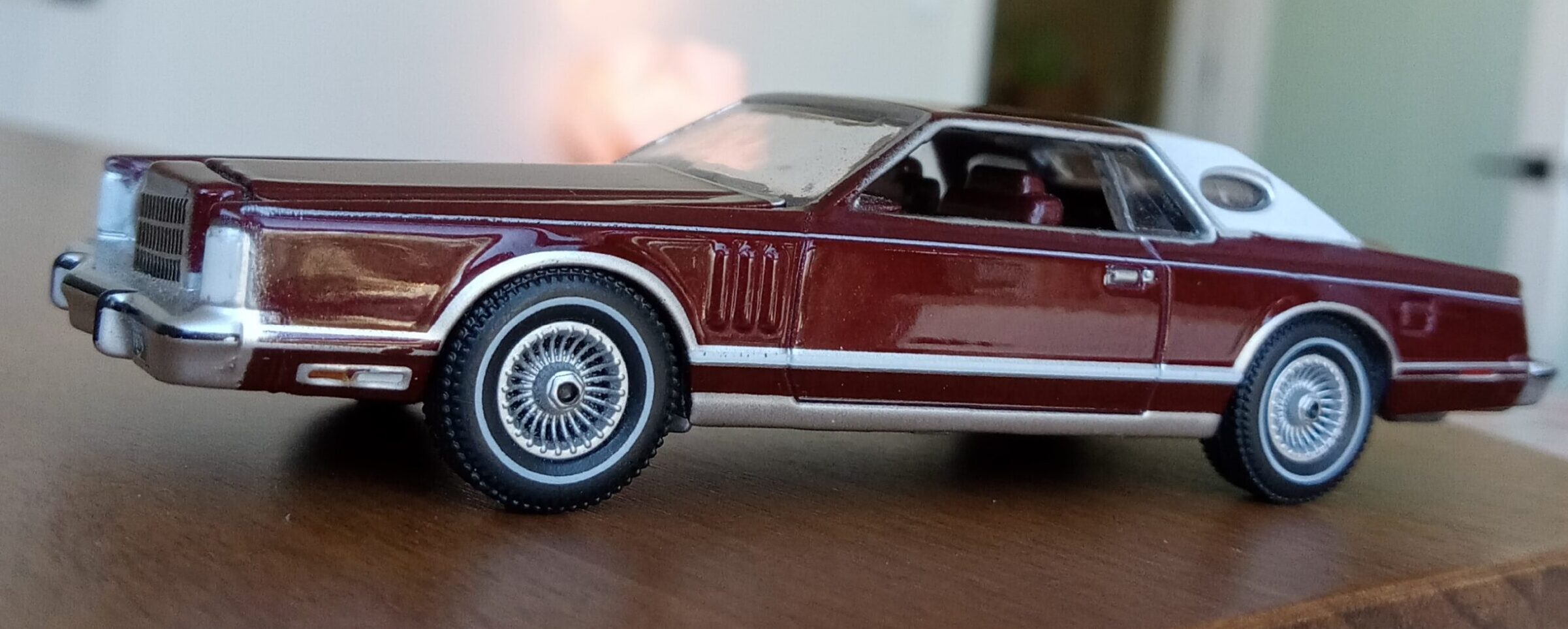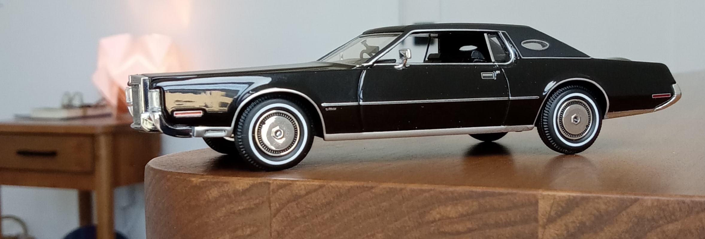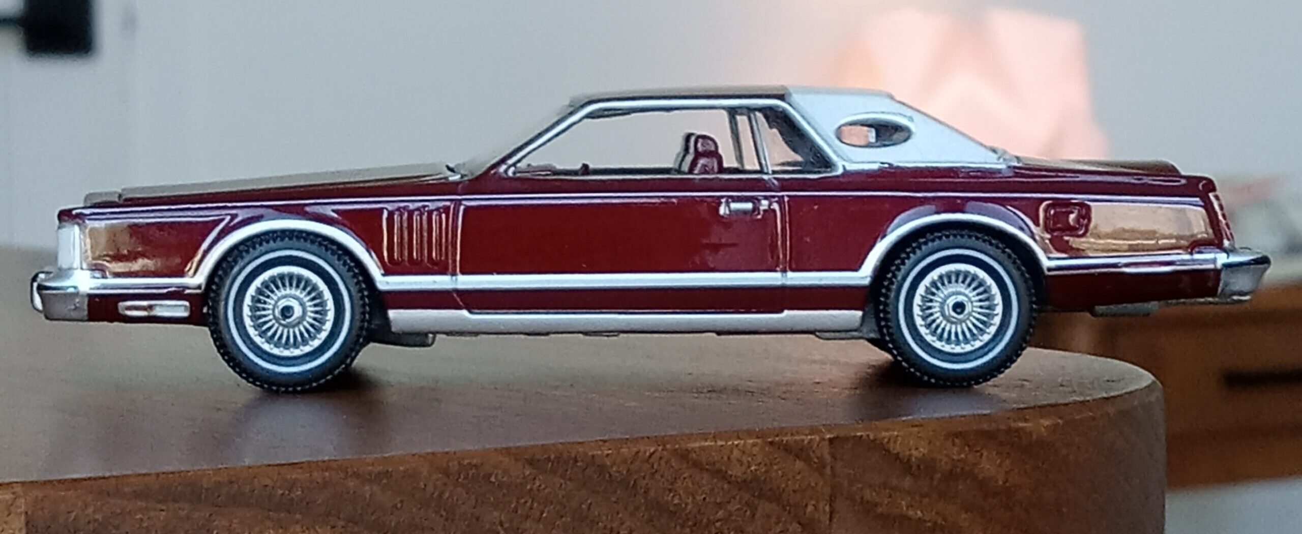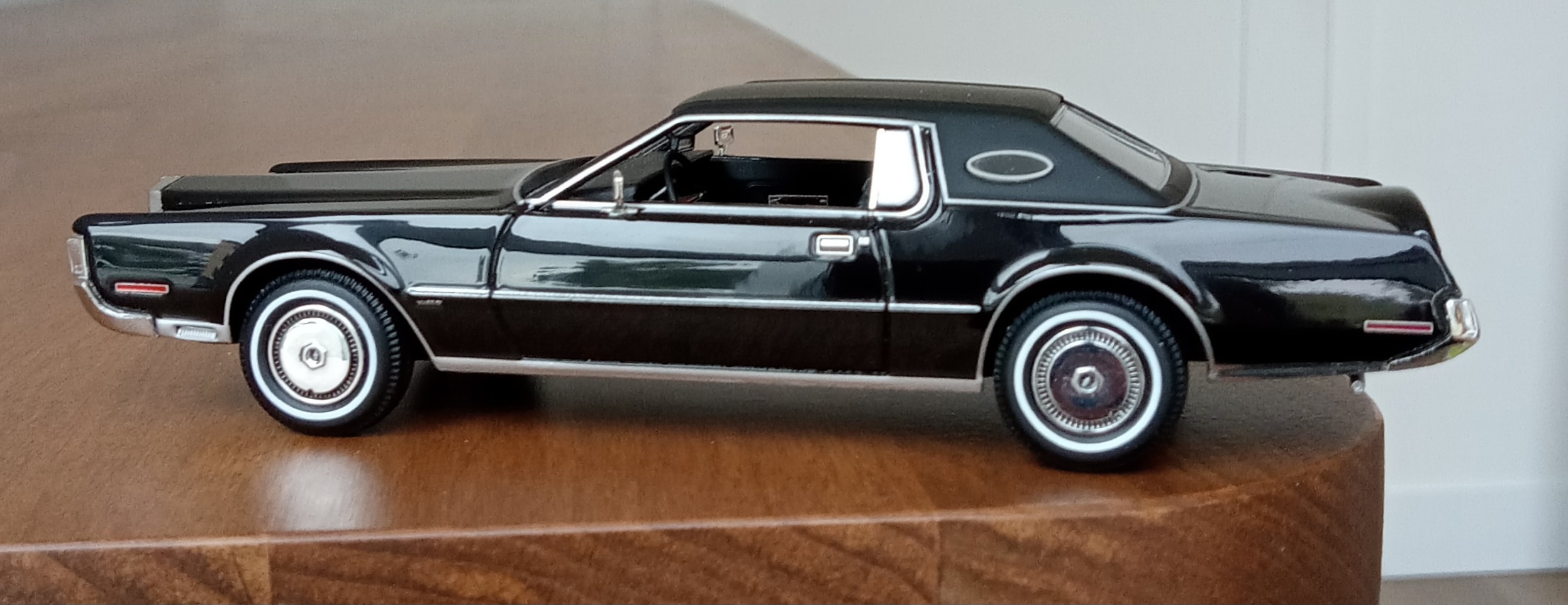 (GLM Models製, 1/43 リンカーン・コンチネンタル MK4, 1972 (ブラック)改造箇所:車軸微調整、ドア下ロッカー部からリア・オーバーハング部分下を薄々攻撃+銀で再塗装)