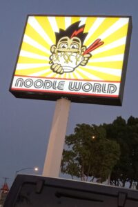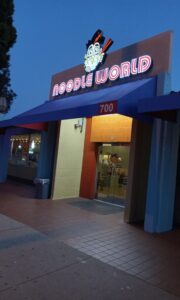 以前はヌードル・プラネットという名前でしたが、10年程前に居間の名前に代わりました。モントレーパーク・アルハンブラ周辺にはそのほか、ヌードル・タウン、ヌードル・シティーなど数々のアジアン麺館がひしめいていますが、このワールドさんが私たちのお気に入りです。(サンマリノのハンティントン・ブルバード沿いにも支店があります。)