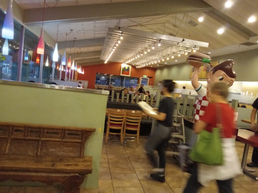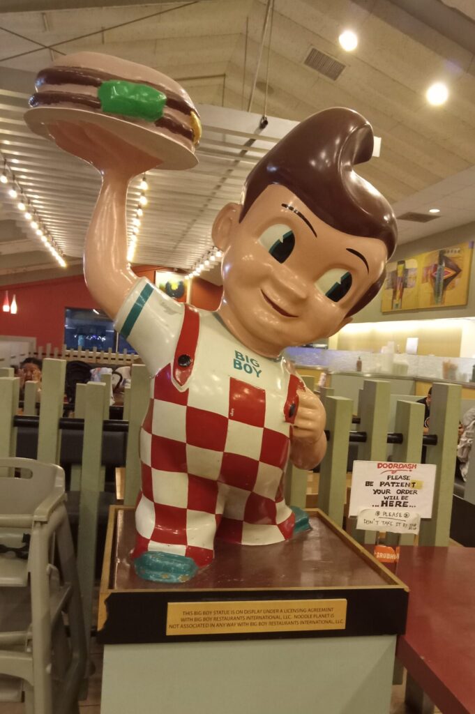 (以前この建物を使っていた有名なハンバーガーレストラン、「Bob’s Big Boy」さんのキャラクターの巨大なフィギュアが展示してあります。