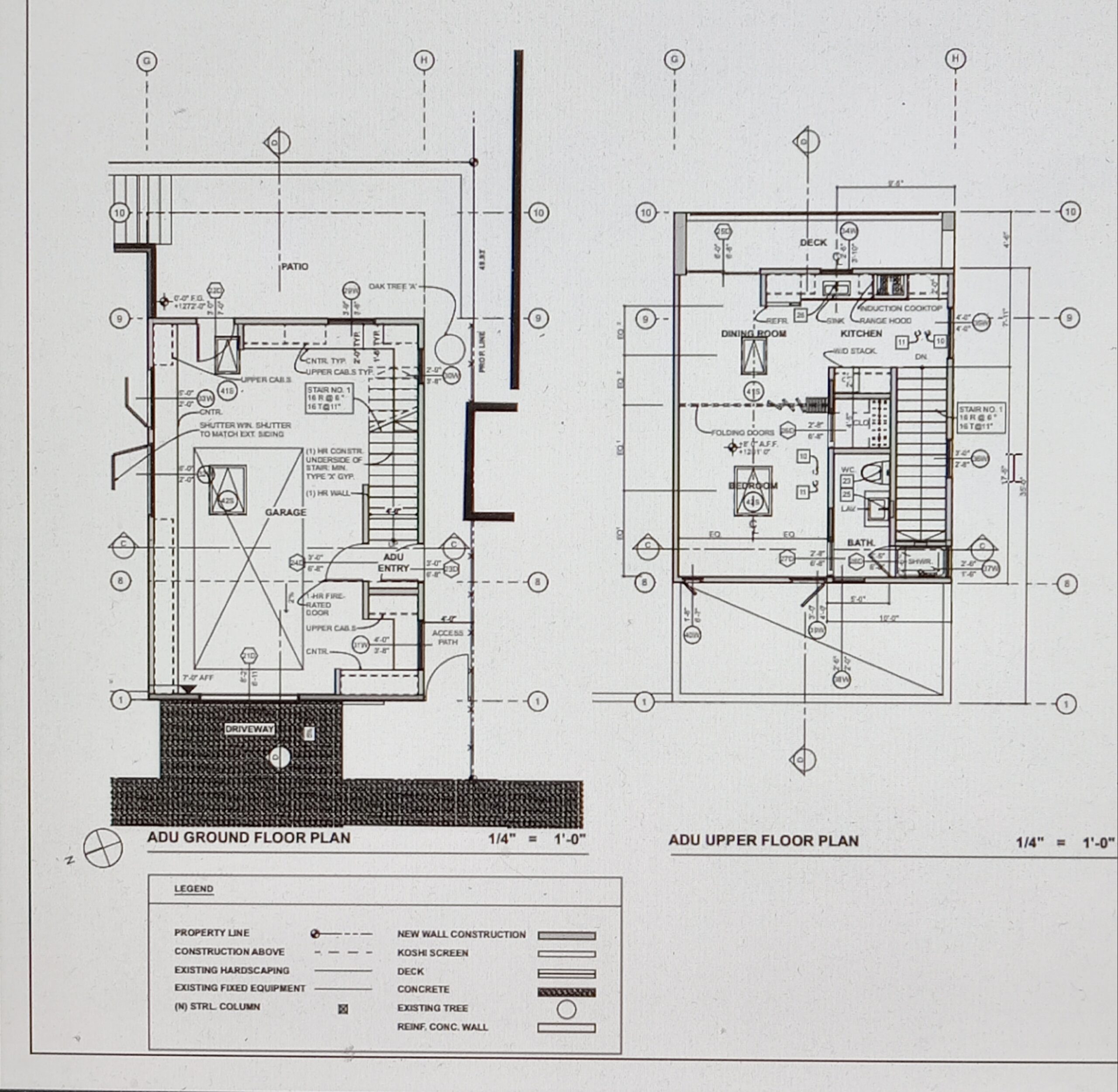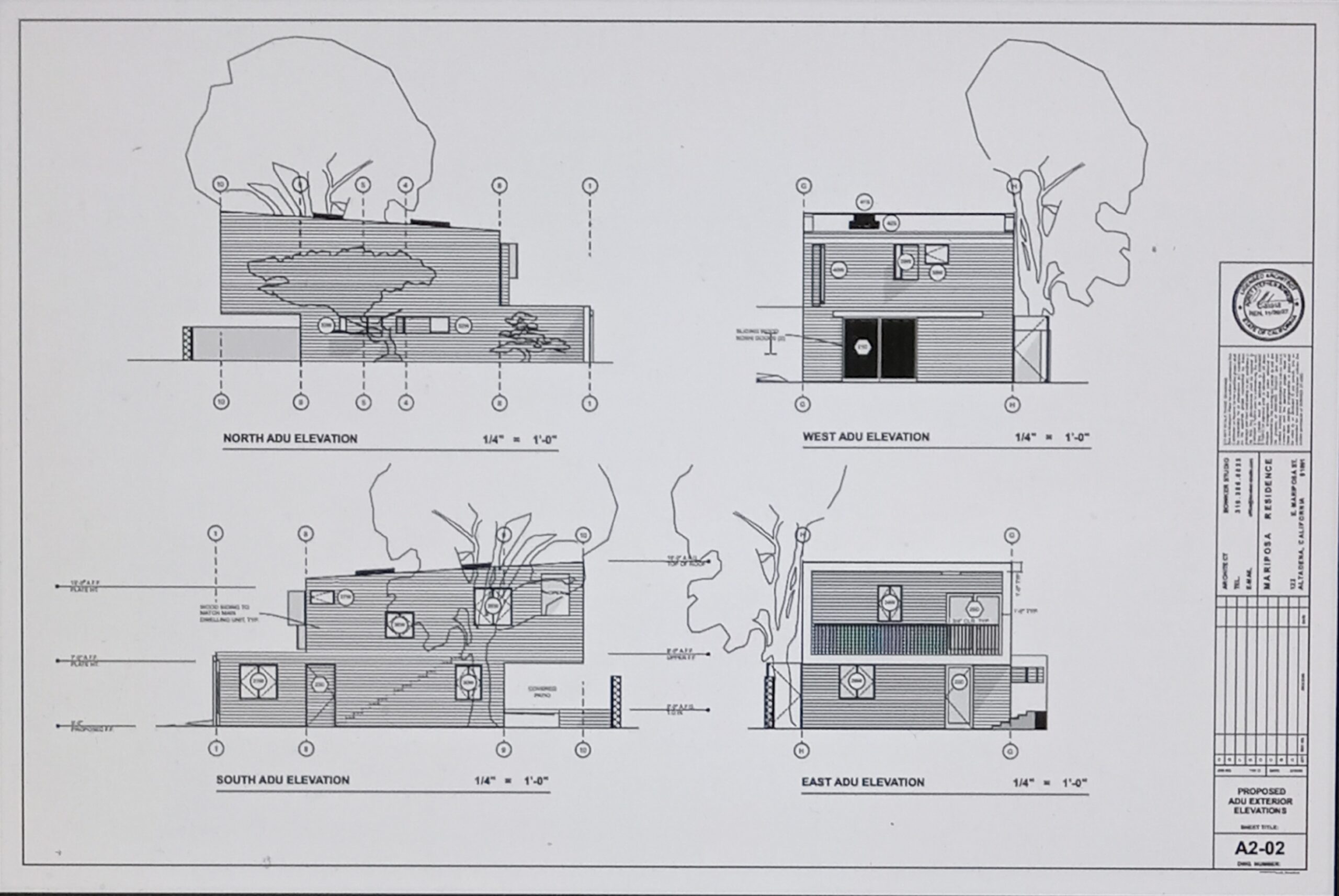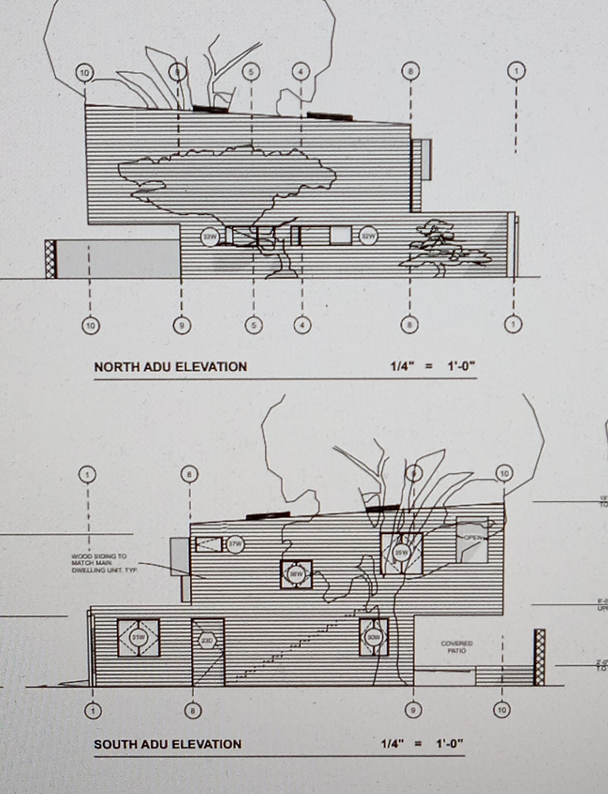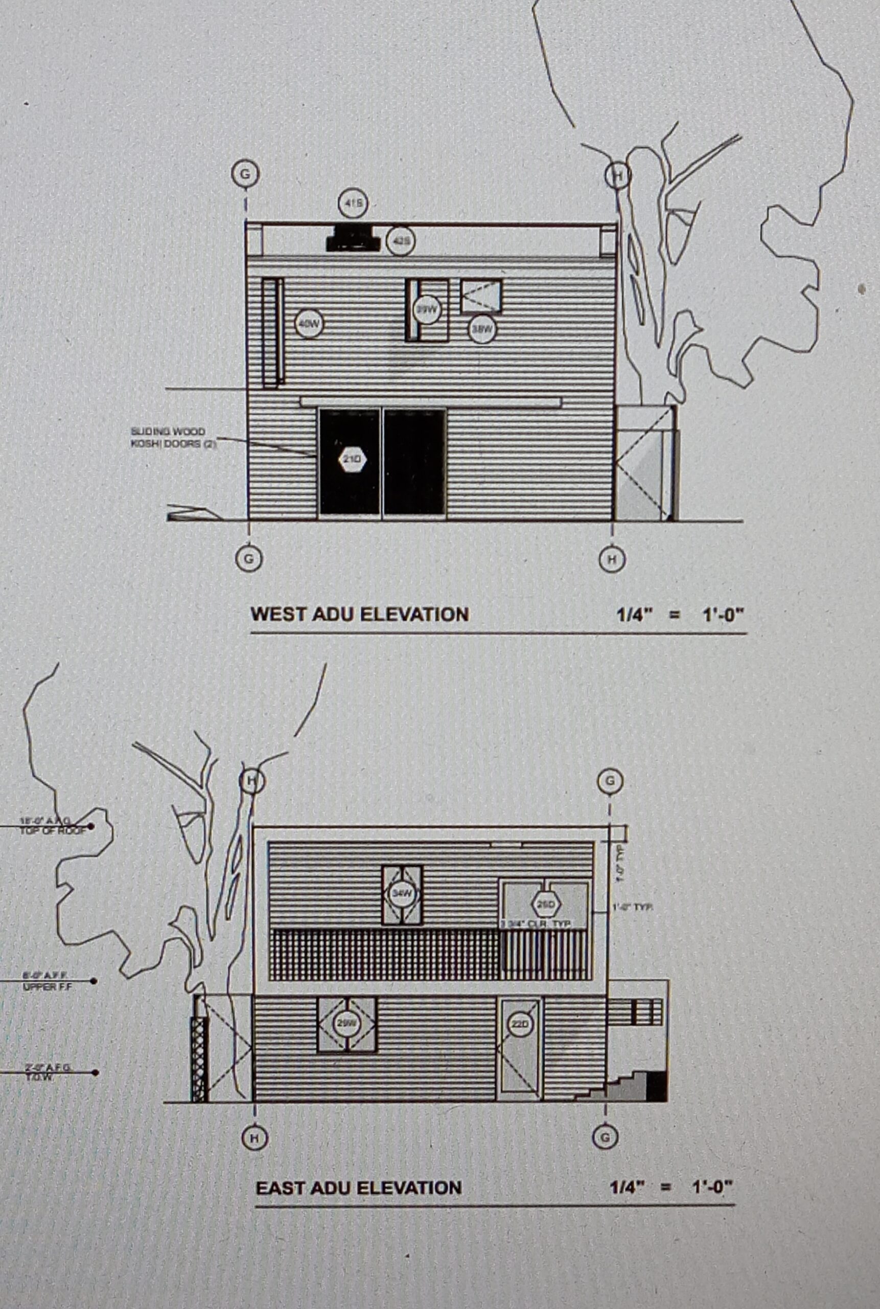 (こちらが工学士に提出する、本宅部分、ガレージとその2階の賃貸物件の最終案【平面図と立面図】となります。】