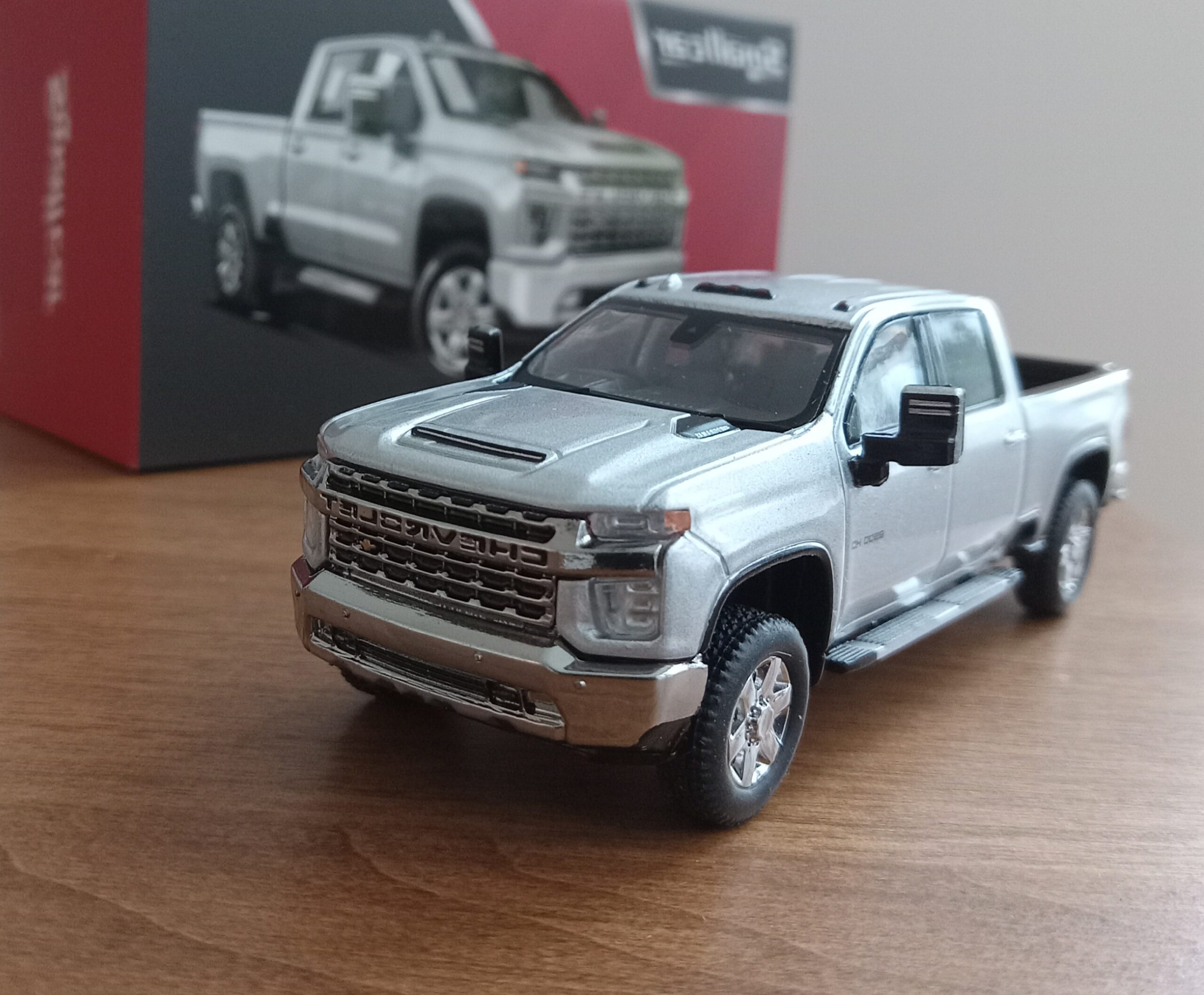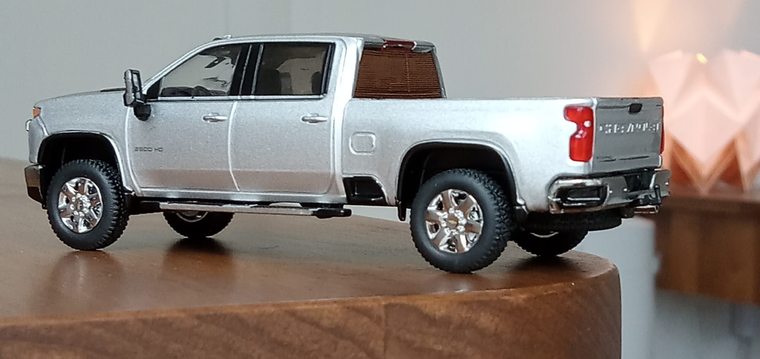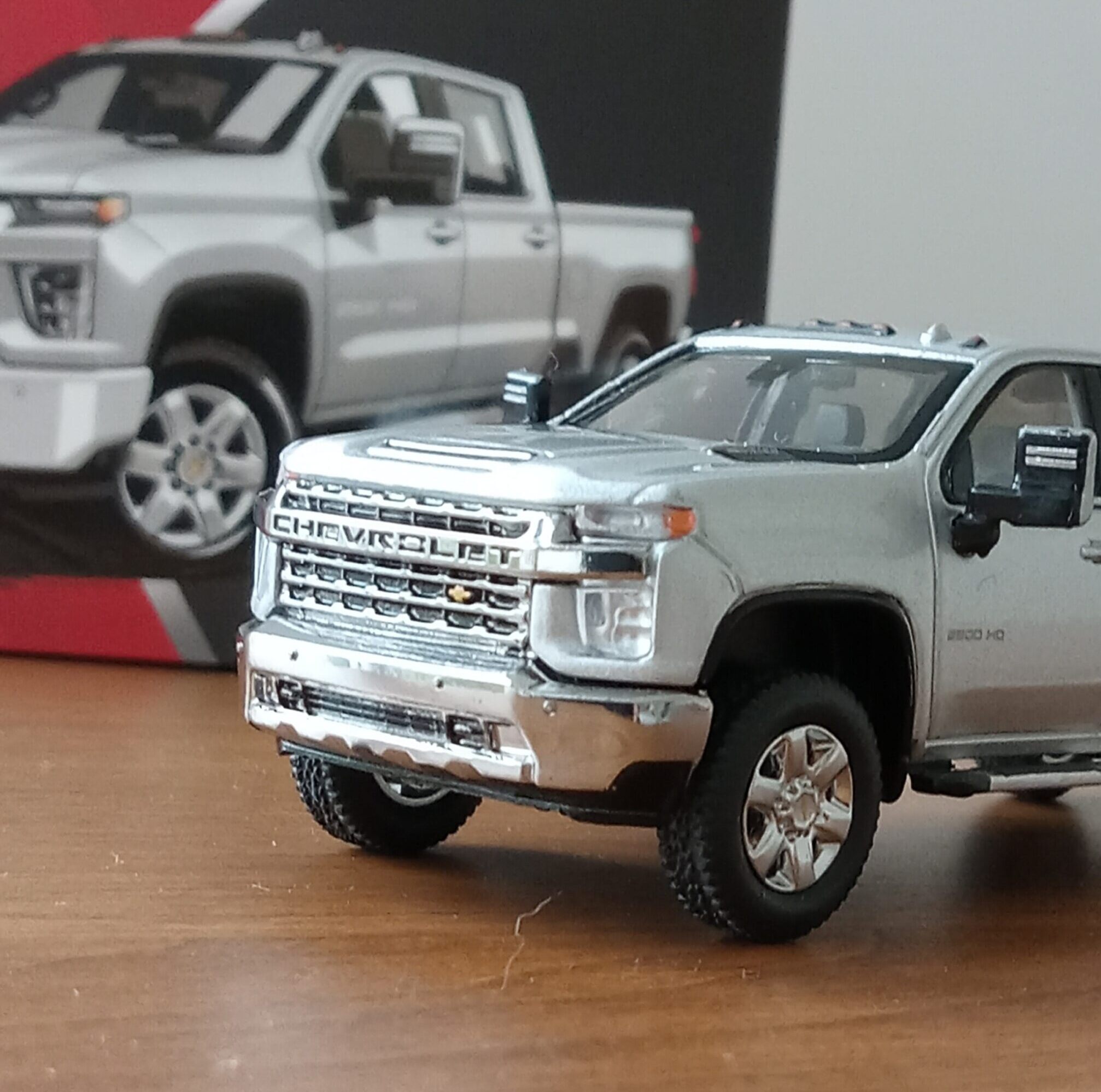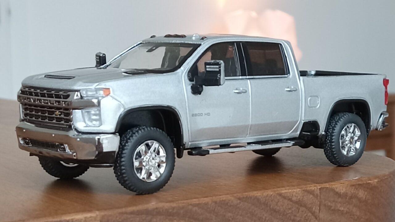 (写真撮影用模型: スモールカー社製、1/64 シボレー・シルバラード 3500HD、202(シルバーアイス・メタリック):出来が完璧なため、未改造で使用)