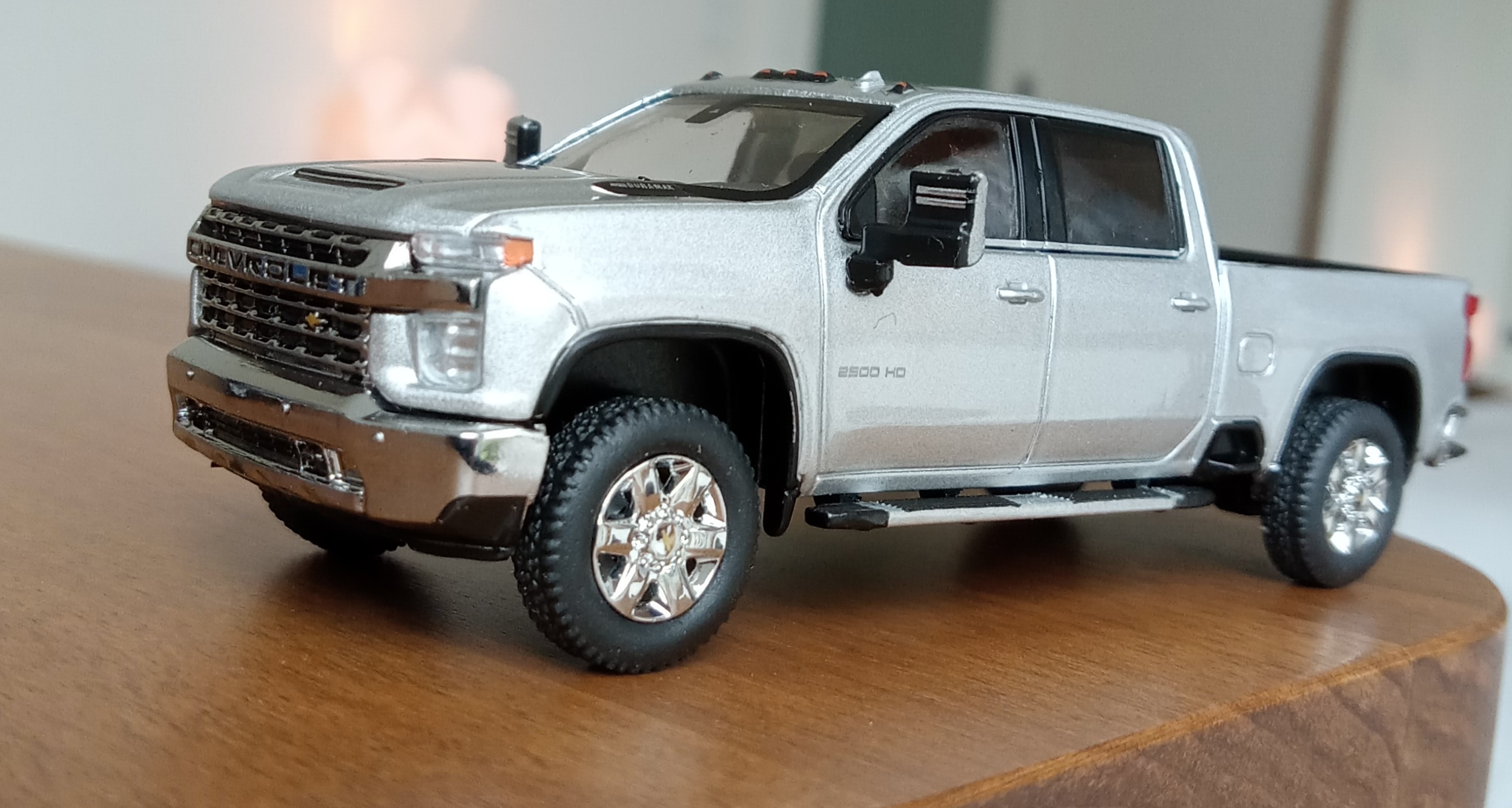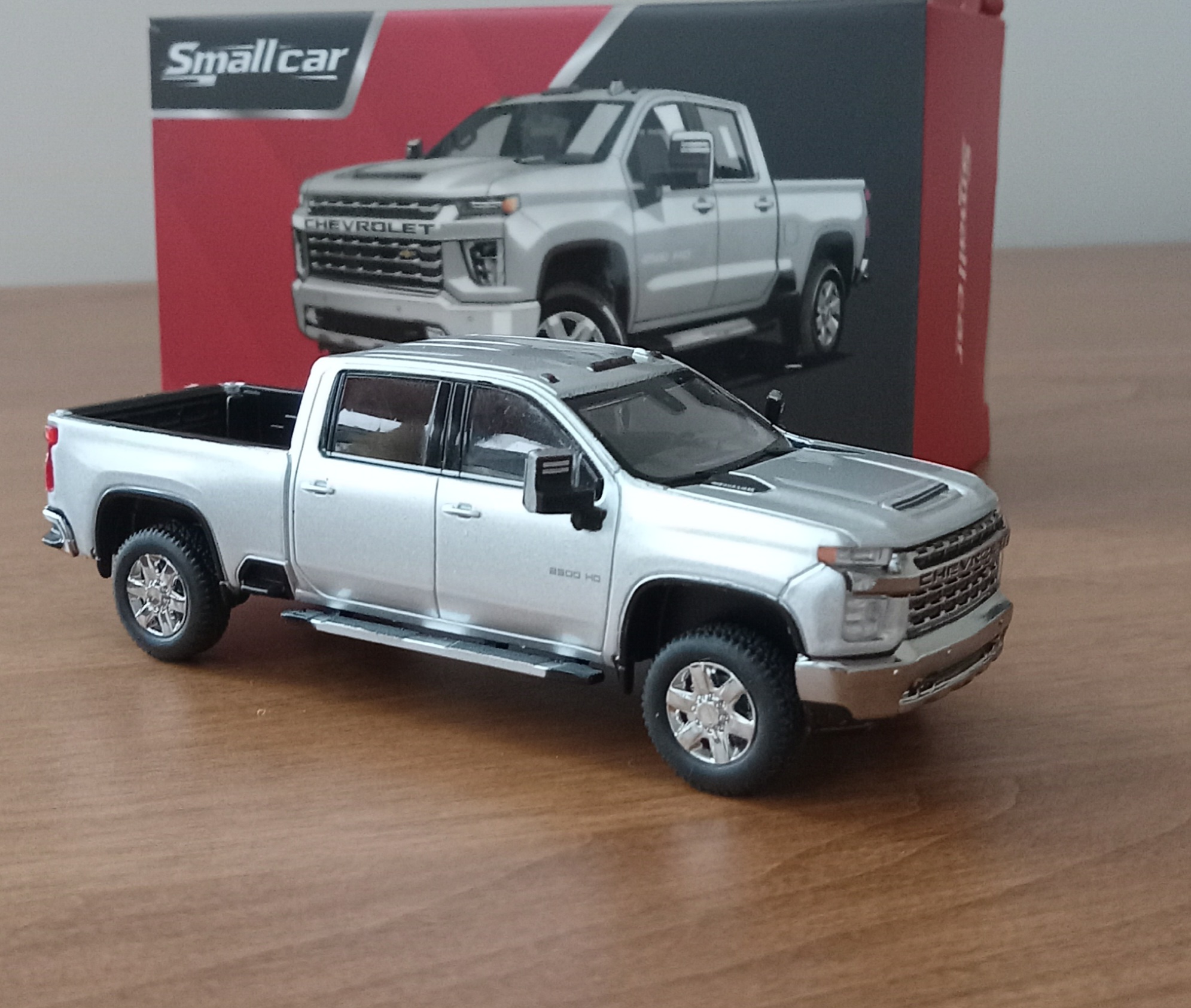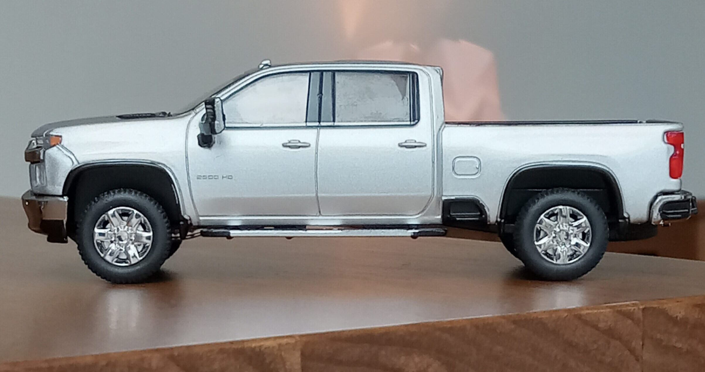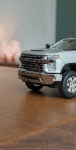 (写真撮影用模型: スモールカー社製、1/64 シボレー・シルバラード 3500HD、202(シルバーアイス・メタリック):出来が完璧なため、未改造で使用)