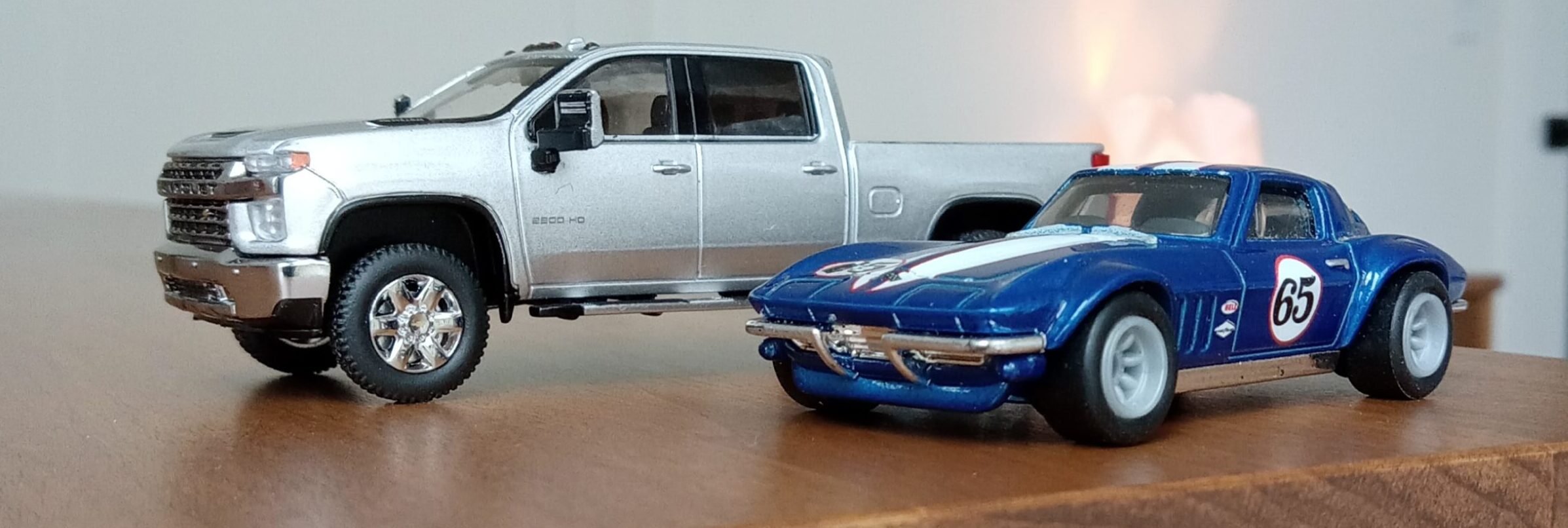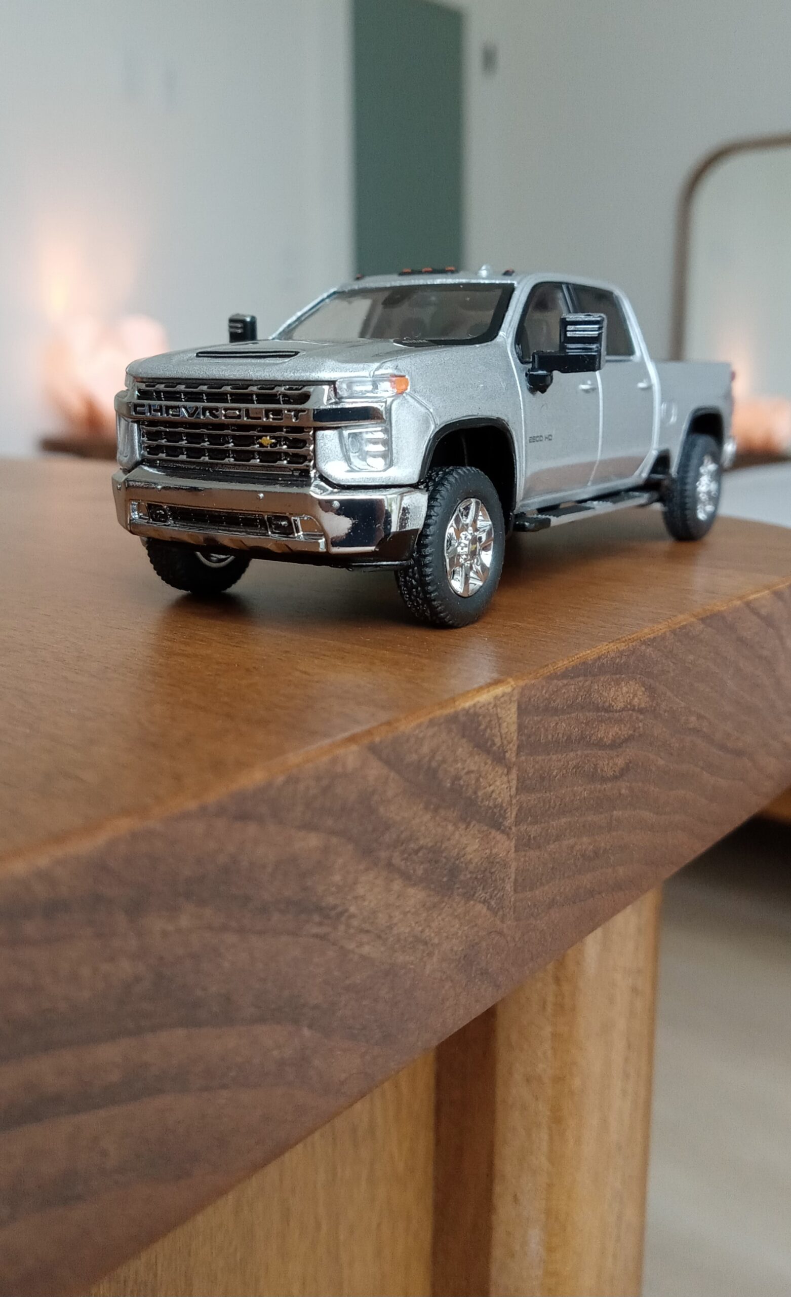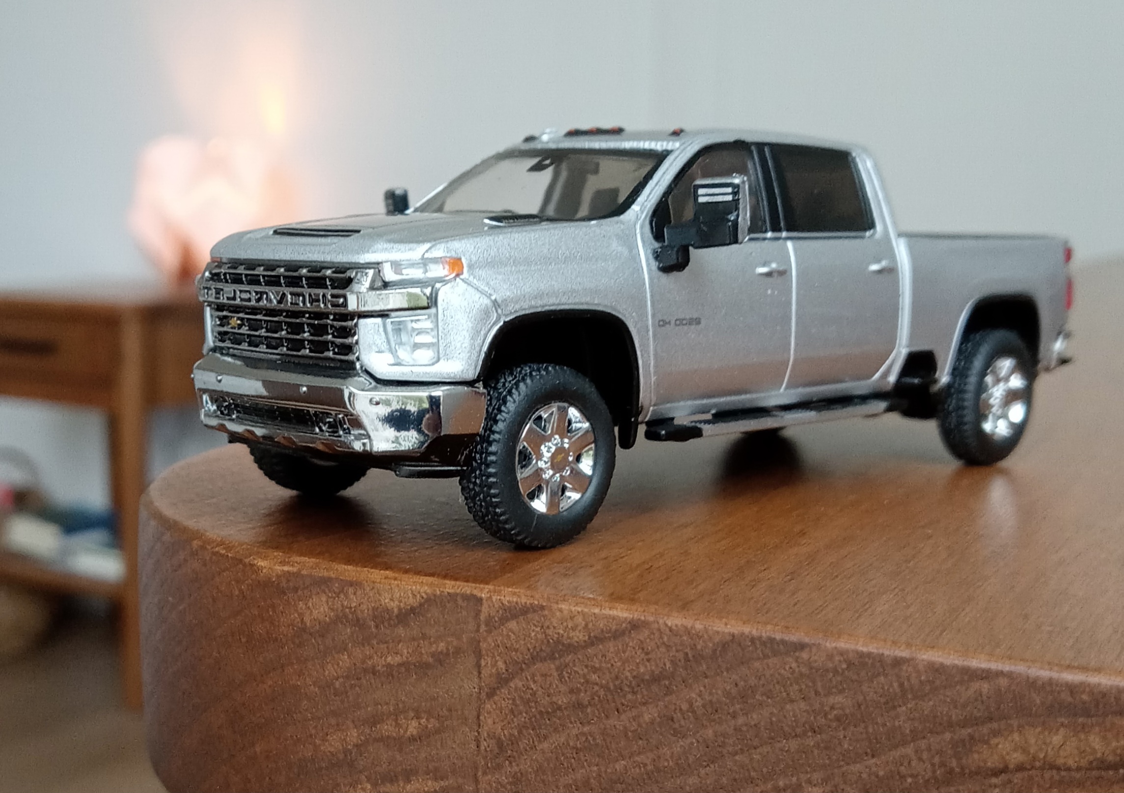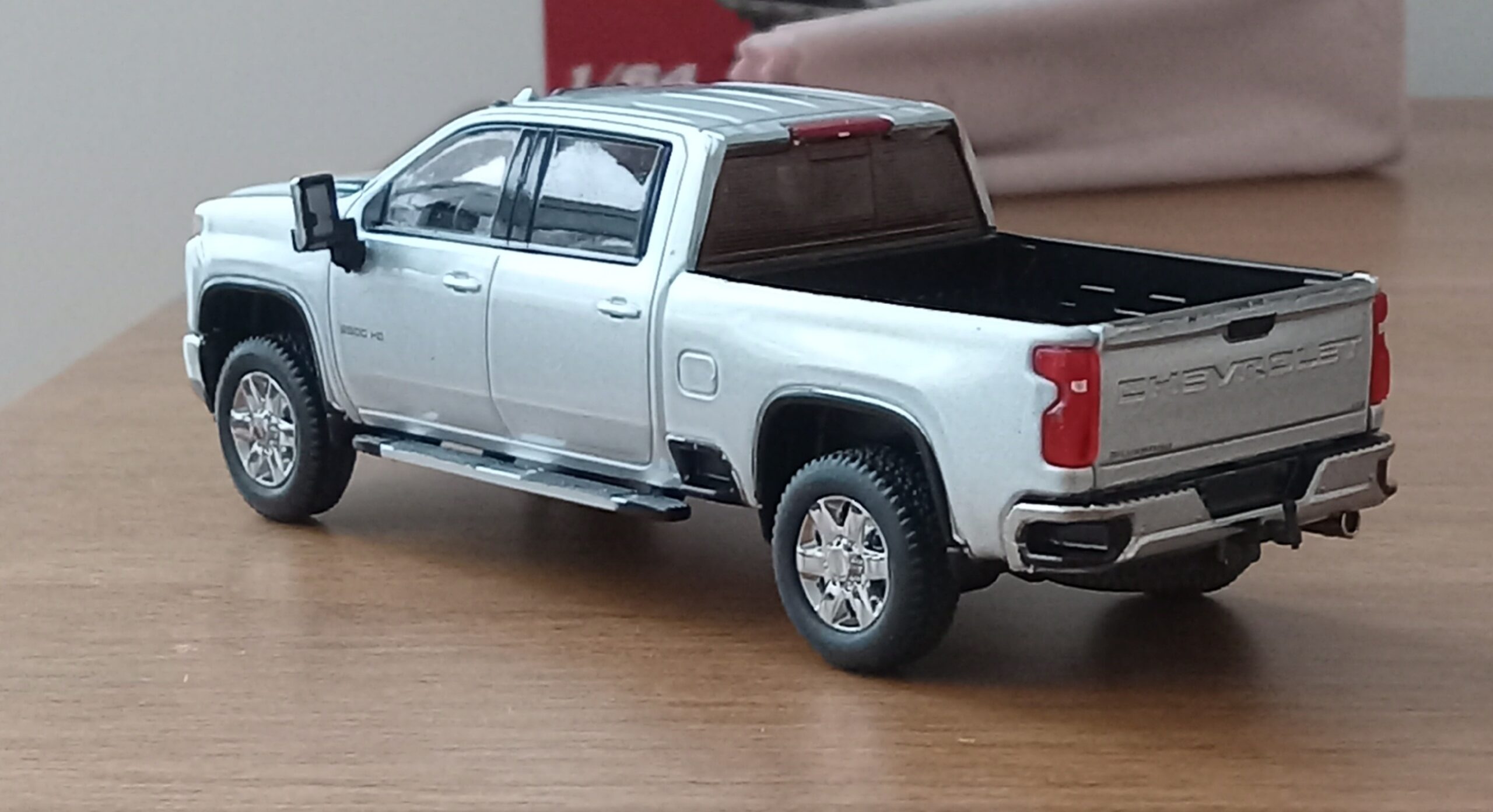 (写真撮影用模型: スモールカー社製、1/64 シボレー・シルバラード 3500HD、202(シルバーアイス・メタリック):出来が完璧なため、未改造で使用)